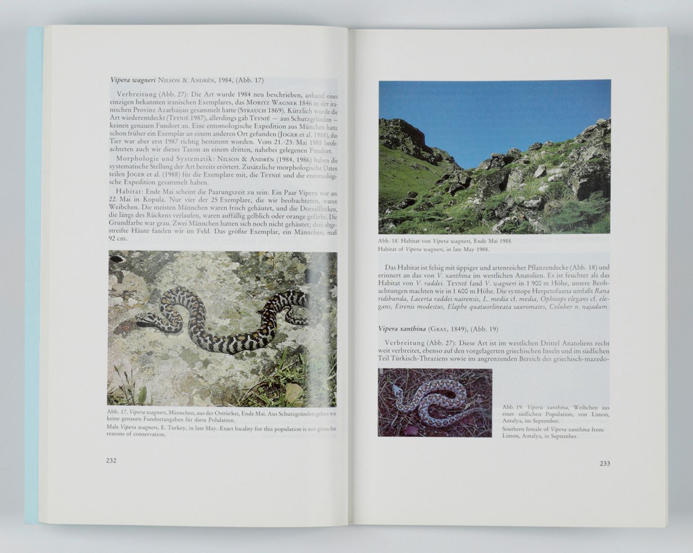Frankfurt am Main, Deutsche Gesellschaft für Herpetologie und Terrarienkunde, 1975-1997. In 63 issues. 8vo (24.0 x 17.0 cm). 613 [284; 329] pp. Numerous illustrations (many in full colour). Original, uniform printed wrappers.