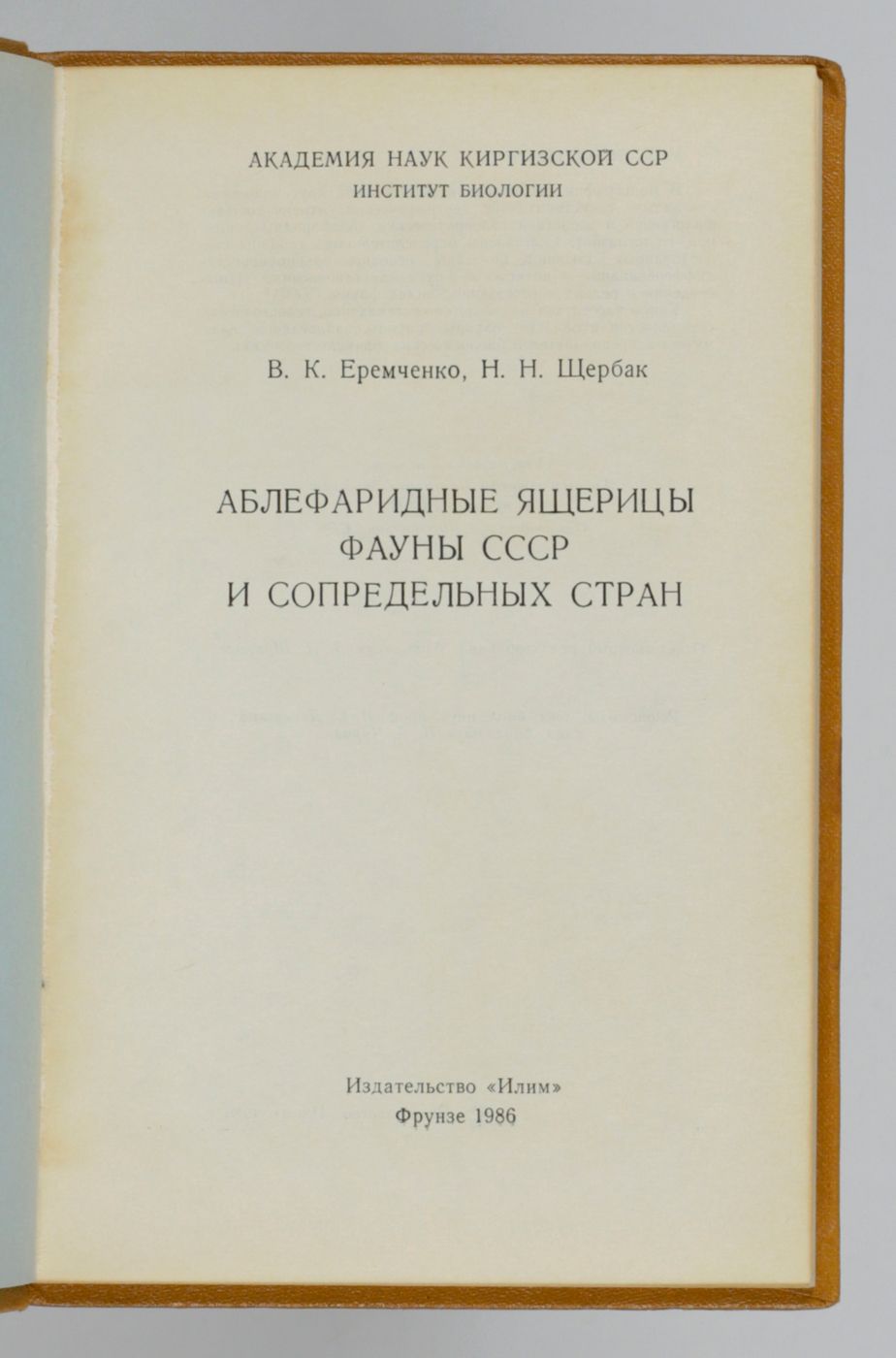 A seldom-seen if not rare, but well-illustrated work on the ablepharine skinks of Central Asia, a group of lizards living in exceptional altitudes, including the Himalayas, and Tibetan plateau. This work however, deals with the westernmost species, all belonging to the genus Ablepharus and subgenera. Bookplate on the front pastedown; label recording seller, place and date tipped in on the front free endpaper recto. Otherwise, an as new clean copy.