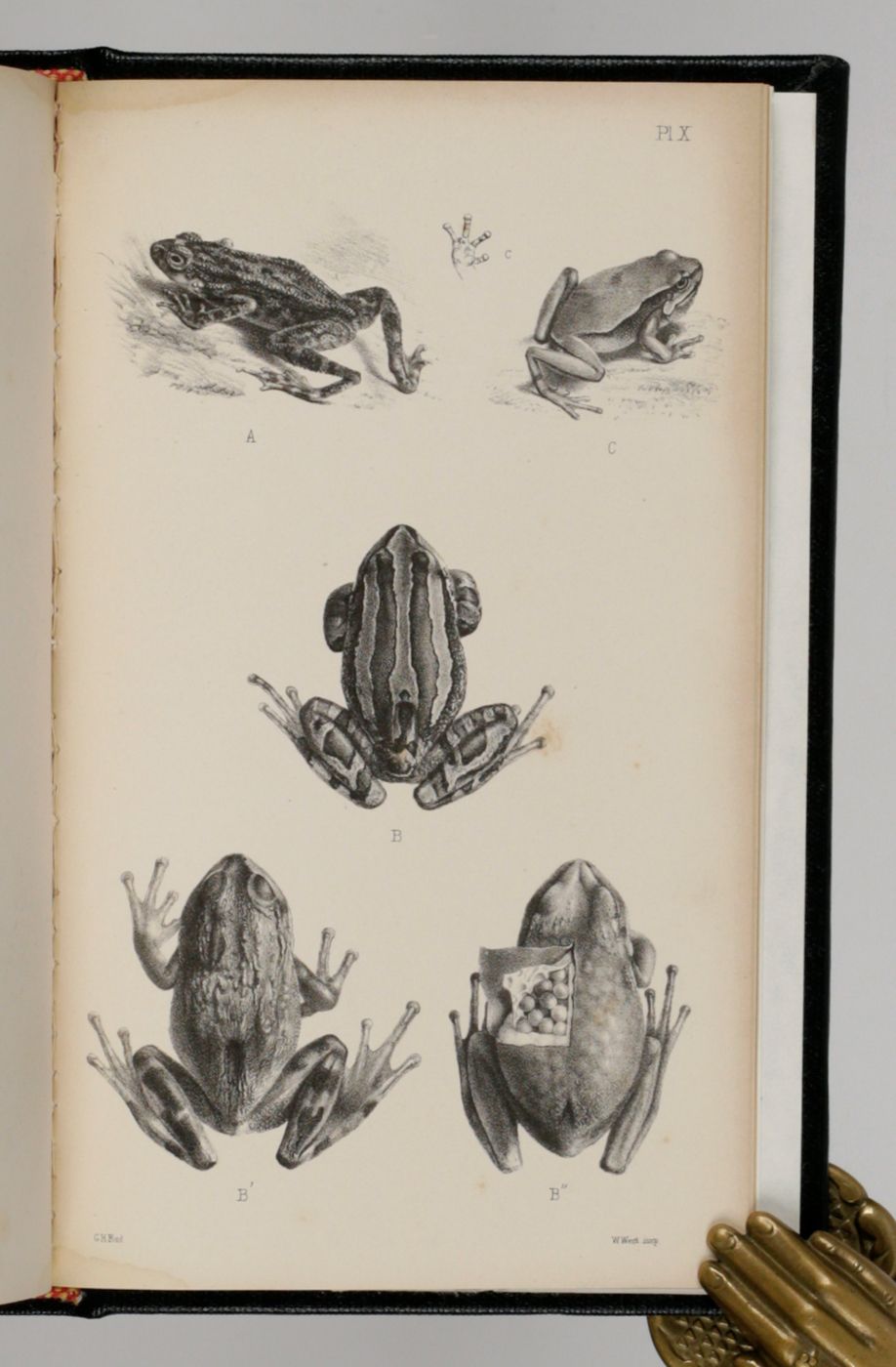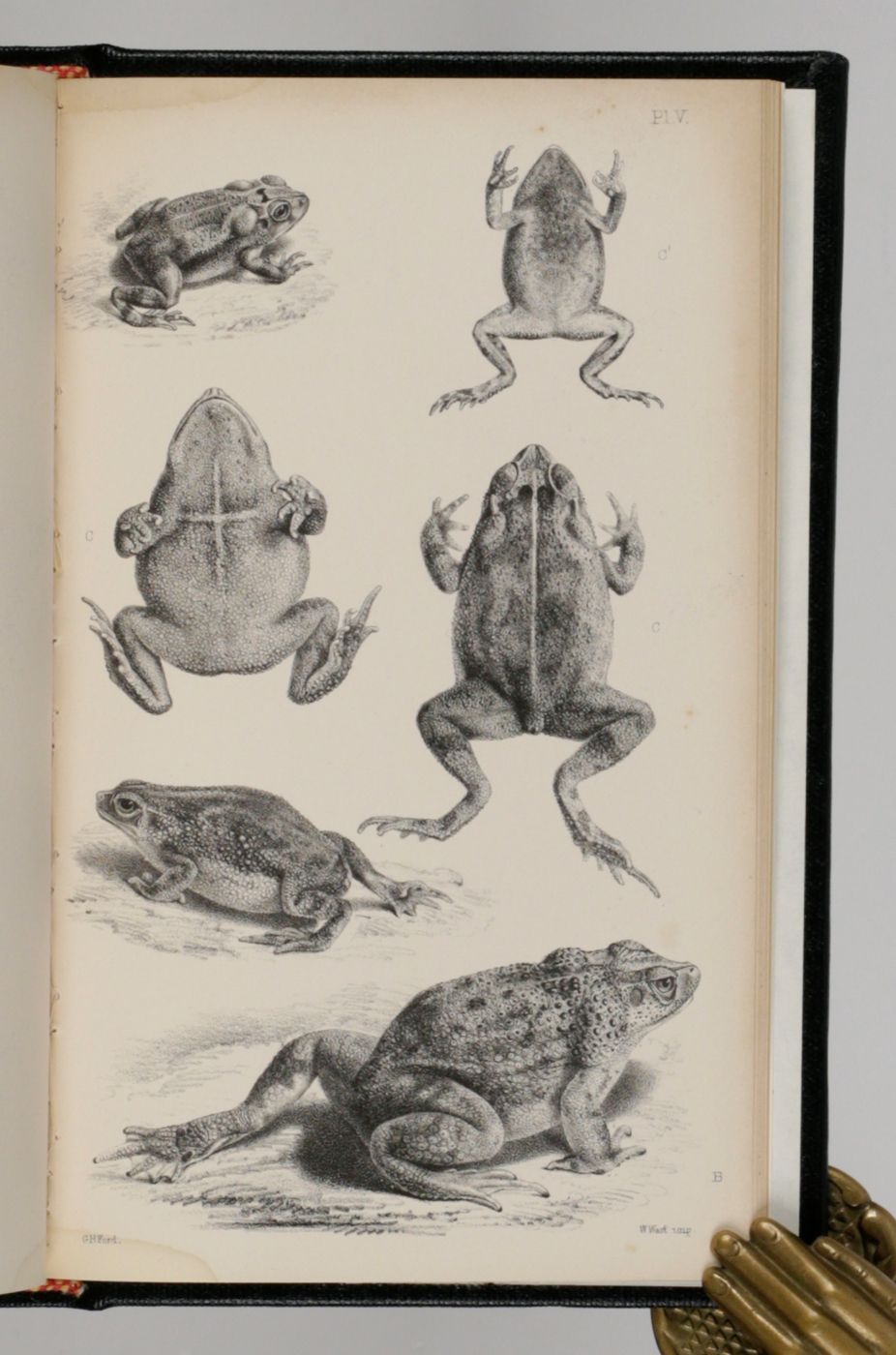 An important catalogue, describing the extremely rich amphibian collection of the British Museum of Natural History in London. Written by the German-British herpetologist Albert Carl Ludwig Gotthilf Günther (1830-1914). Included are descriptions and illustrations of new species of frogs and toads. It also contains many data on variability, distribution, distinctive characters, a chronology of the number of species known to science, a geographical index, etc. In the rear is an 8 pp. advertisement describing and pricing all catalogues of the zoological collections in BM(NH) published up to May, 1857. Provenance: mounted on the front cover verso, a pictorial bookplate. Very small, hardly noticeable damp-stain to the lower margin, near the gutter; an occassional spot; some more foxing to the last plate and the first advertisement leaf. Otherwise, a very good, clean, bound copy.