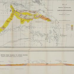 Adelaide, W. C. Rigby (for the Royal Society of South Australia), 1893-1896. Two volumes (of three) in two. 8vo (21.3 x 14.0 cm). 317 pp. [numbered 69-386]; 38 plates (numbered II-XXXIX), of which seven in chromolithography, and three larger, folded. Very large, partly coloured folded map (106.0 x 60.5 cm). Original uniform printed wrappers.