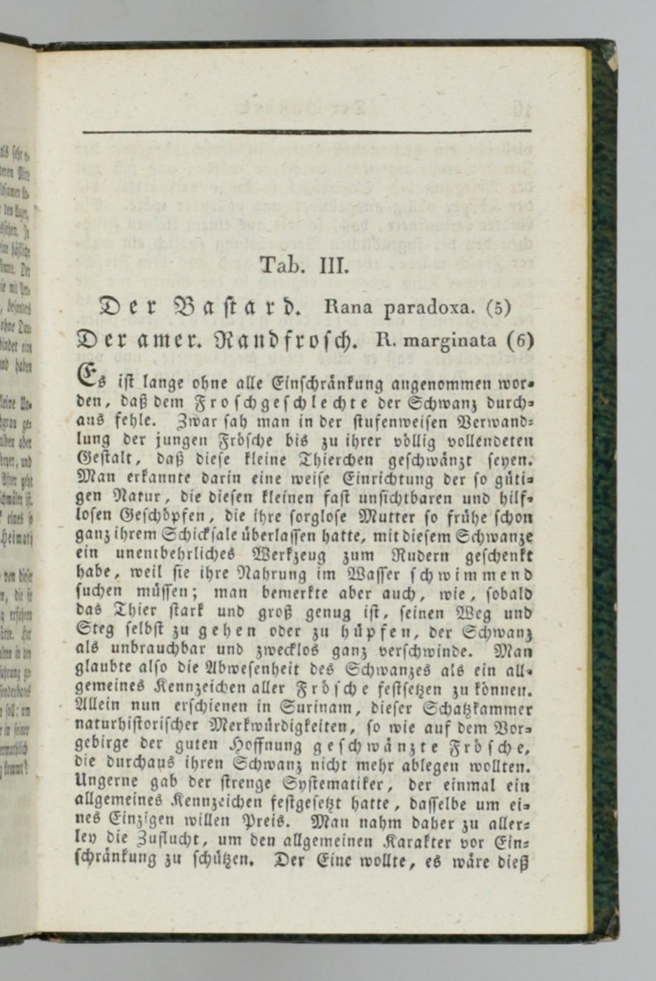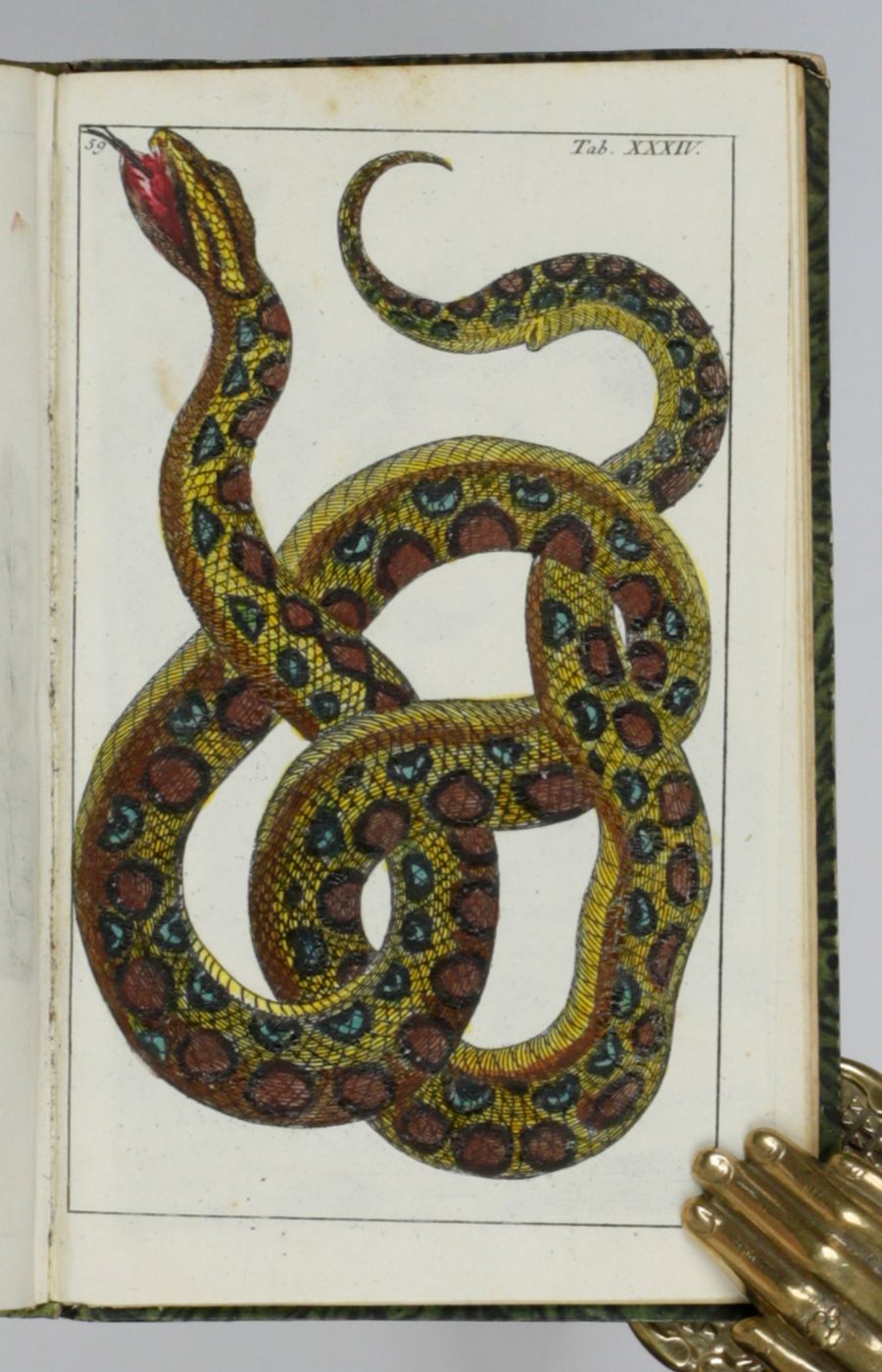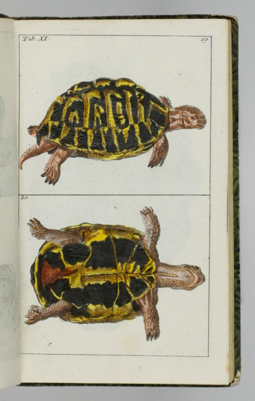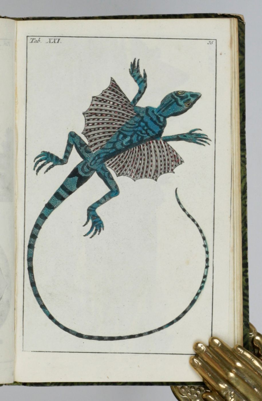 The complete herpetology of a series of natural history works titled "Natural History stories", renowned for its plates, as much as for its texts, if not more so. Written by the German naturalist Gottlieb Tobias Wilhelm (1758-1811). This is the complete, final edition. A French edition was published too. Provenance: the name Con[rad] Schefold, written in an old hand on the front free endpaper recto of the text volume; pictorial bookplate of the Swiss zoologist Christian Sigrist mounted on the front pastedowns. Boards with some light age-wear. Minimal spotting, here and there; the plates clean. The colouring is strong and very bright. This "Neue Ausgabe" (new edition) has the text more condensed and in a smaller typeface, than the first edition, hence there are fewer text pages. A French edition was published too. The colouring is strong and very bright. Nissen ZBI 4408.