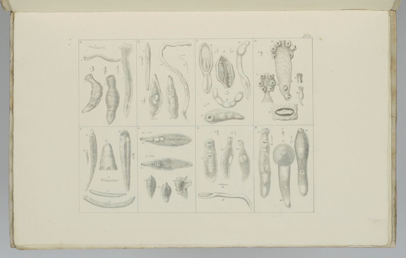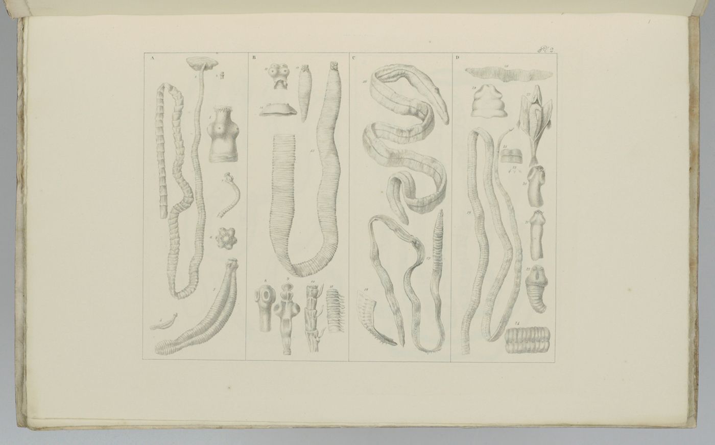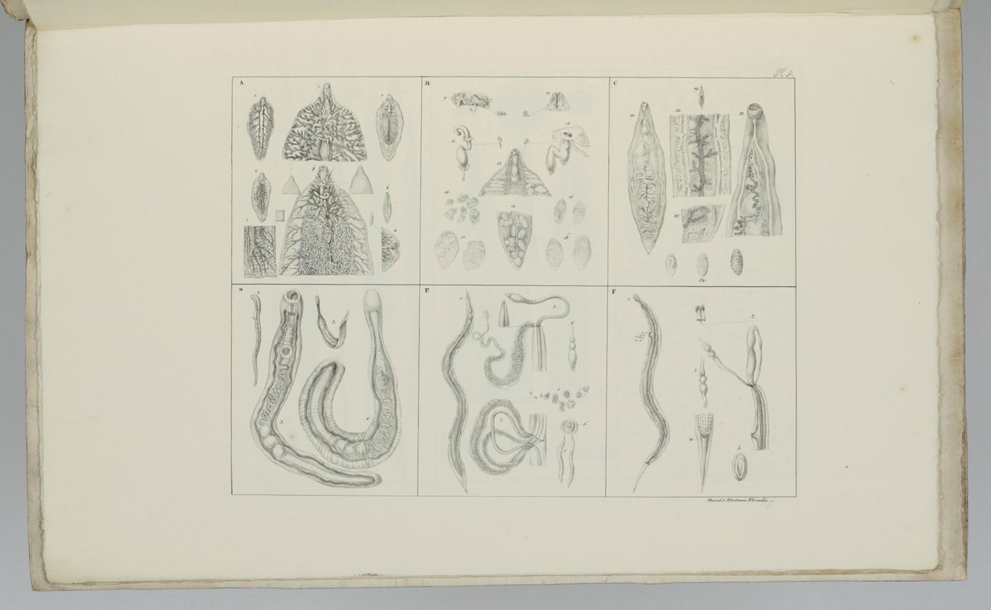 Recueil de figures des vers intestinaux. Ouvrage, présentant une distribution méthodique des ces animaux, les caractères généraux et particuliers de leurs familles et de leurs genres, principalement suivant le système de Mr. le professeur C. A. Rudolphi et la description de quelques espèces les plus remarquables.