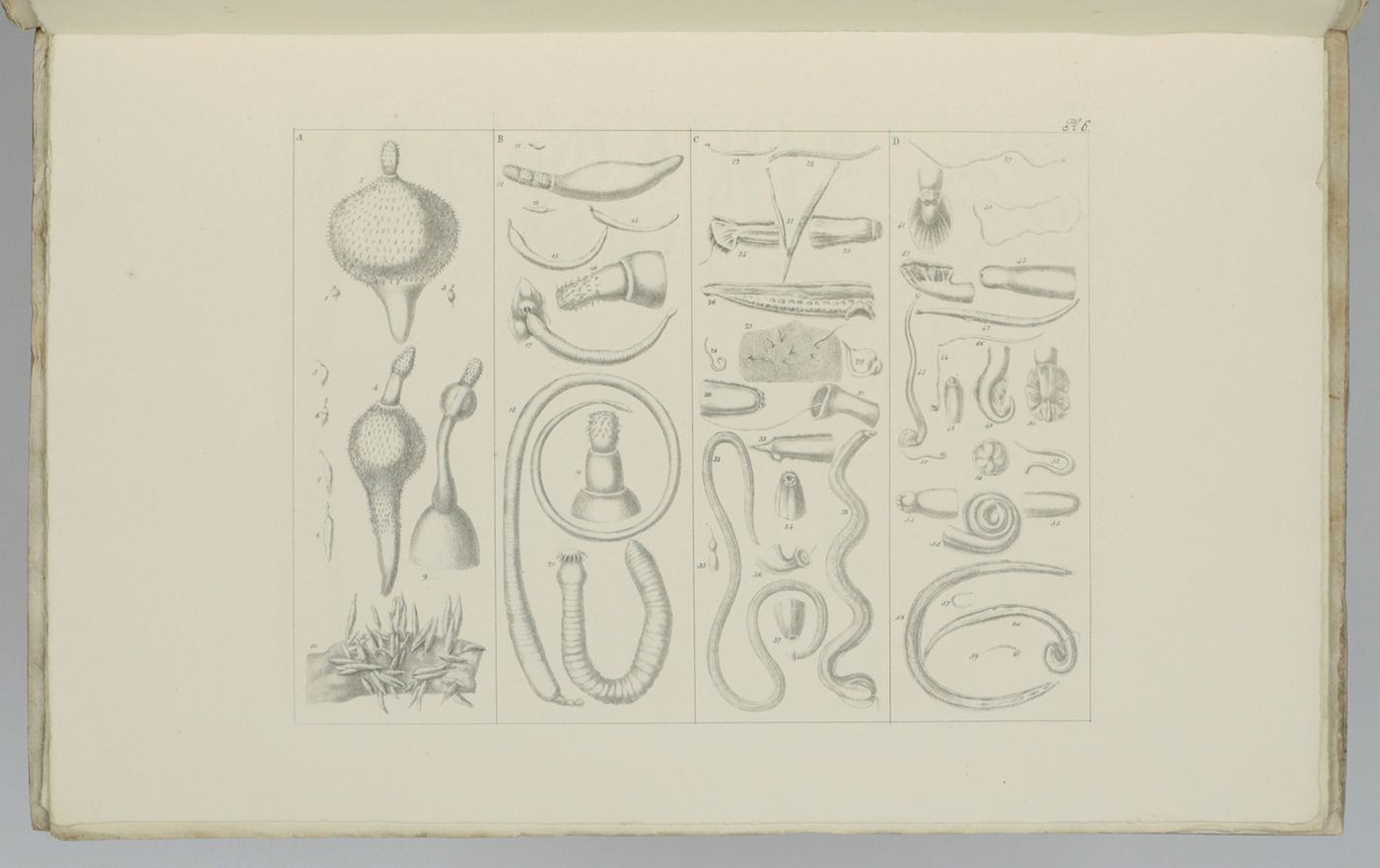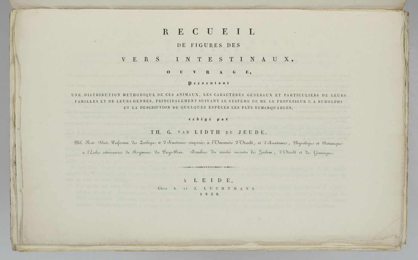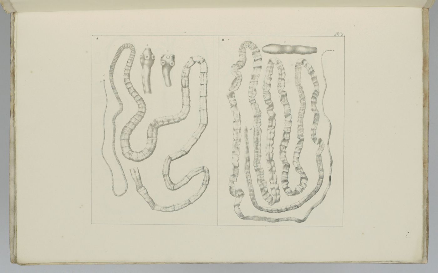 Recueil de figures des vers intestinaux. Ouvrage, présentant une distribution méthodique des ces animaux, les caractères généraux et particuliers de leurs familles et de leurs genres, principalement suivant le système de Mr. le professeur C. A. Rudolphi et la description de quelques espèces les plus remarquables.