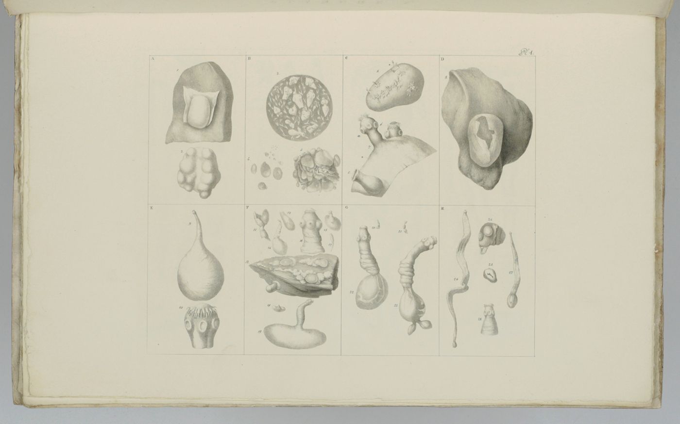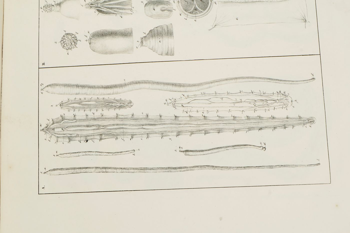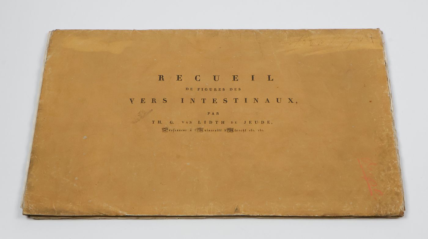 A rare work on mammalian and avian intestinal parasites, with fine, lithographed plates. Written by the Dutch zoologist, parasitologist, veterinary doctor and rector magnificus of Utrecht University from 1833 to 1834, Theodoor Gerard van Lidth de Jeude (1788-1863). Between 1821 and 1826 he was the first director of the National Veterinary School, the first educational institution where veterinary medicine was taught in the Netherlands. In Utrecht he owned a park and museum, with a collection of animal skeletons. This is hist most important contribution to zoology. Copies with just ten plates have been advertised. This copy has 11 plates. Lacks, however, an explanatory leaf to plate 11. Otherwise, a well-preserved copy. Cat. BM(NH) p. 1110; Not in Nissen ZBI.