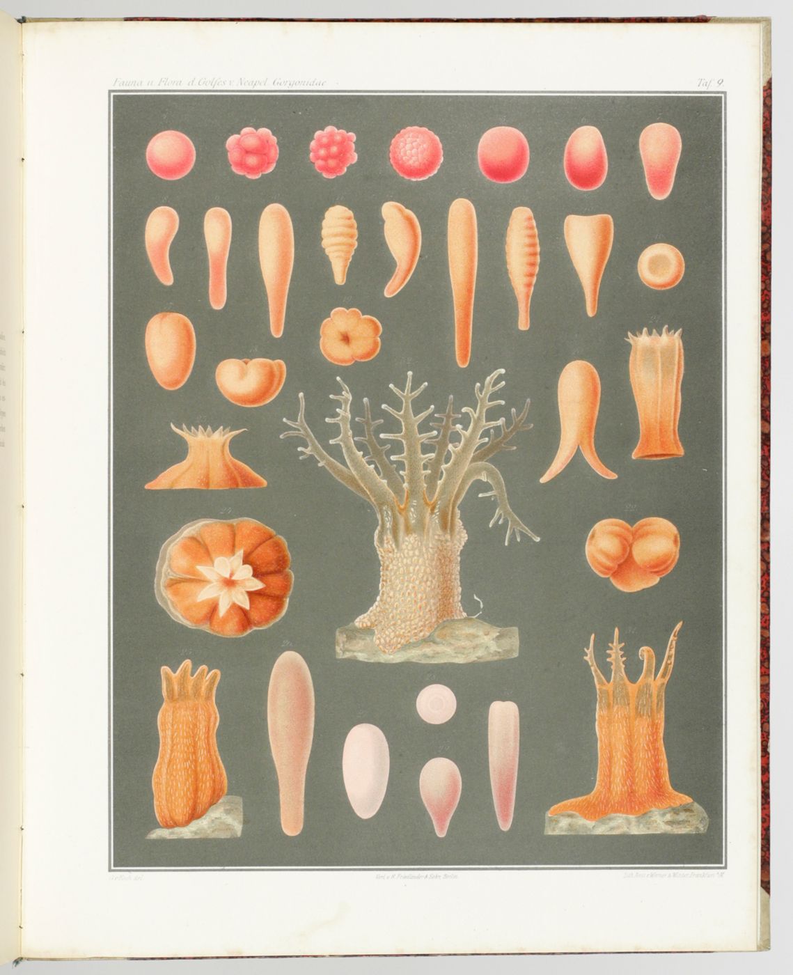 One of the earlier parts of the famous Fauna und Flora des Golfes von Neapel. Written by the German zoologist Gottlieb von Koch (1849-1914), and dedicated to the great Italian marine biologist Filippo Cavolini (1756-1810), author of the groundbreaking Memorie per servire alla storia de' polipi marini (1785). Although the title states that this is the first part, this actually is all that was published. This rarely-seen work took 20 years to complete. A very good clean copy of the original publication, with all the fine plates. (Modern) reprints are no match. Very rare. Nissen ZBI, 2257.