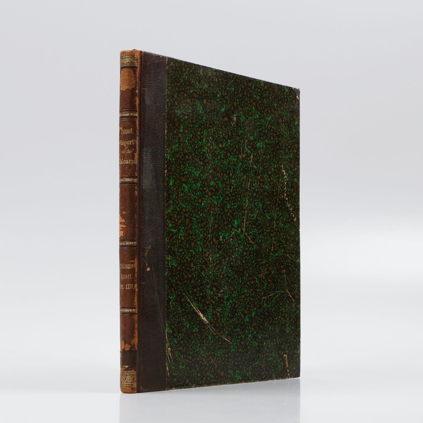 London, Her Majesty's Stationery Office, 1883. 4to (29.2 x 24.6 cm). Title page, (i), 76 pp.; nine lithographed plates, several with additional printing in blue. Contemporary half morocco over marbled boards. Spine with gilt ornamental bands and title. Brown endpapers.