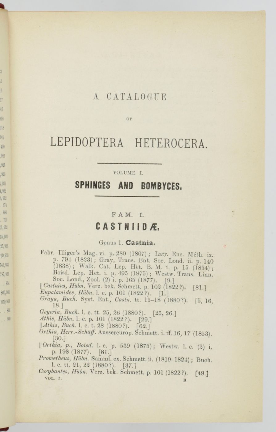 A synonymic catalogue of Lepidoptera Heterocera (Moths). Vol. I. Sphinges and bombyces. [All published].