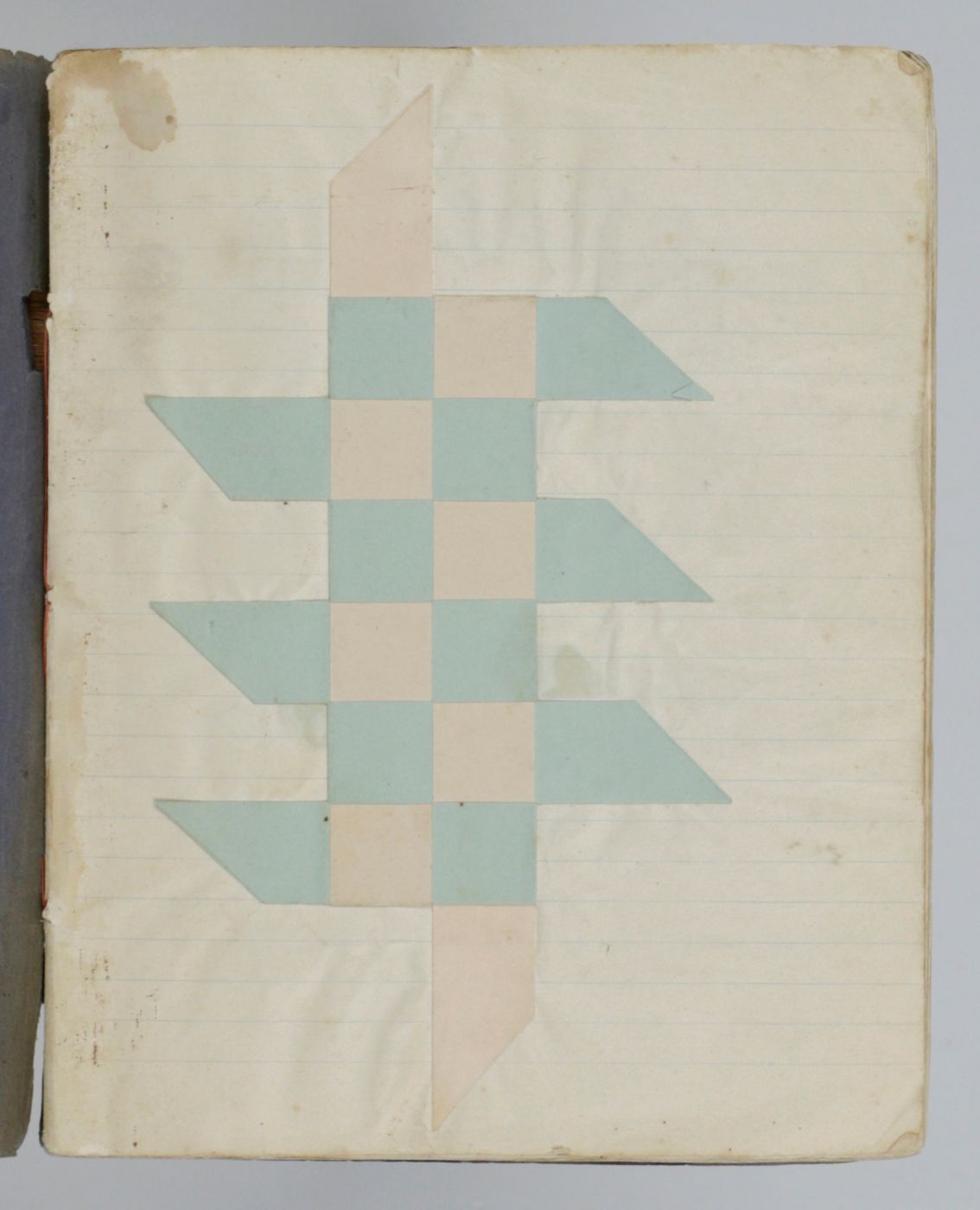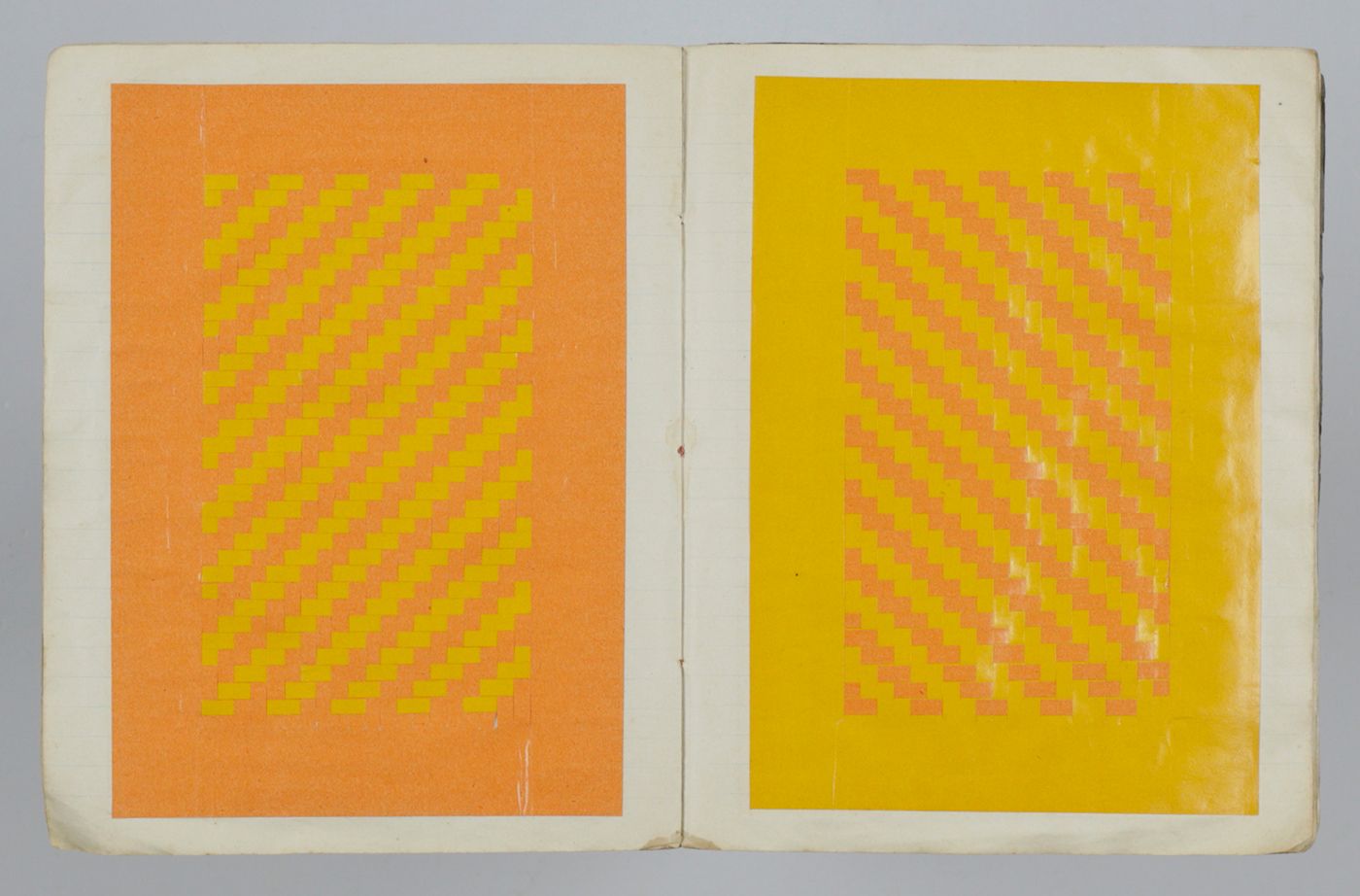 St. Jacobi Parochie [The Netherlands], W. Dijkstra, ca. 1915-1920. School notebook (21.0 x 16.5 cm). 18 pp., each with colourful samples of paper weavings on recto and verso (36 in total). Plain wrappers with blue and white octagonal label pasted on the front wrapper, and name and place hand-written in ink.