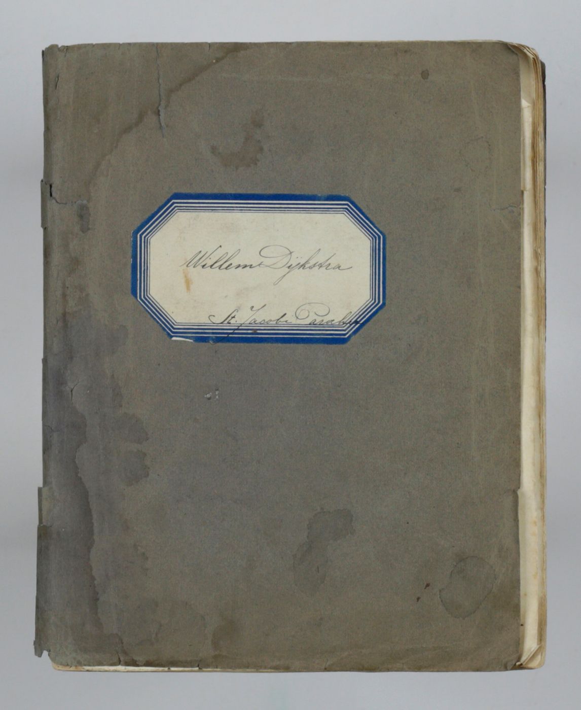 A unique piece of folk art from the province of Friesland, in the northern Netherlands. Made by a boy named Willem Dijkstra. On a basis of narrow strips of glossy paper, the samples show a wide, pleasant and intriguing variety of tessellations and colour combinations. With Willem being a very common Dutch first name, and Dijkstra being one of the most common Frisian surnames, it is difficult to establish the artist's identity. However, St. Jacobi Parochie (now: Sint Jacobiparochie) was and is a very small town, founded in 1505 by Catholic immigrants from Holland who diked this remote part of the Netherlands along the Wadden Sea. A St. Jacobiparochie farmer named Willem Dijkstra married in 1935 at the age of 27. Being born in 1907 or 1908, he may have been the artist. Wrappers damp-stained, and chipped at spine fold and edges; interior not affected; some very minor defects to the tessellations, otherwise very good.