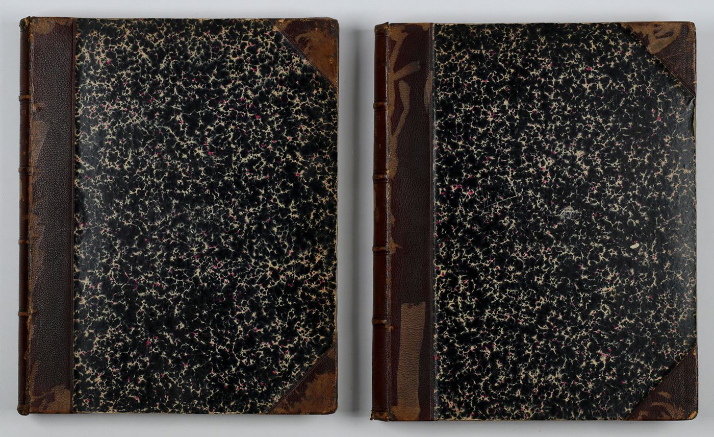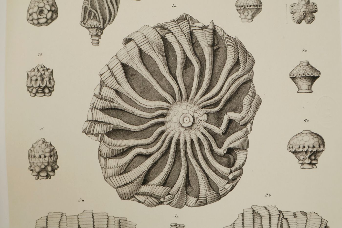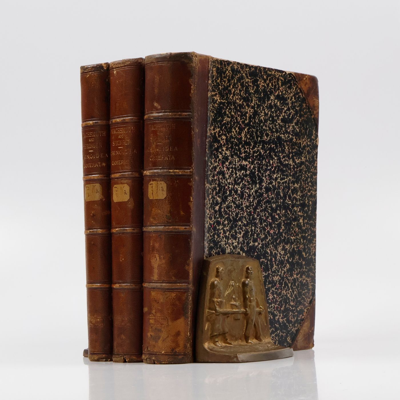 Very important and rare basic monograph on North American Crinoidea, very well illustrated after drawings by C. R. Keyes, lithographed by A. M. Westergren. It includes numerous new taxa. The work took three years to be printed and published. Meanwhile, first author, German-American palaeontologist Charles Wachsmuth (1829-1896) died after a long illness, and several species were formally named elsewhere, by other authors. Pictorial bookplate of the Samuel Hubbard Scudder Library of the Boston Society of Natural History on the front pastedowns; small blind-stamps of the society on front wrappers and titles, and their name in gilt on the lower spines. Some rubbing to the boards and spine feet. Blind-stamps to front wrappers and title pages; small, oval blind-stamps to a few plates. Otherwise a very good, clean, complete set. We found only one auction record, dating from 1964! Cat. BM(NH) 5, p. 2244. Not in Nissen ZBI.