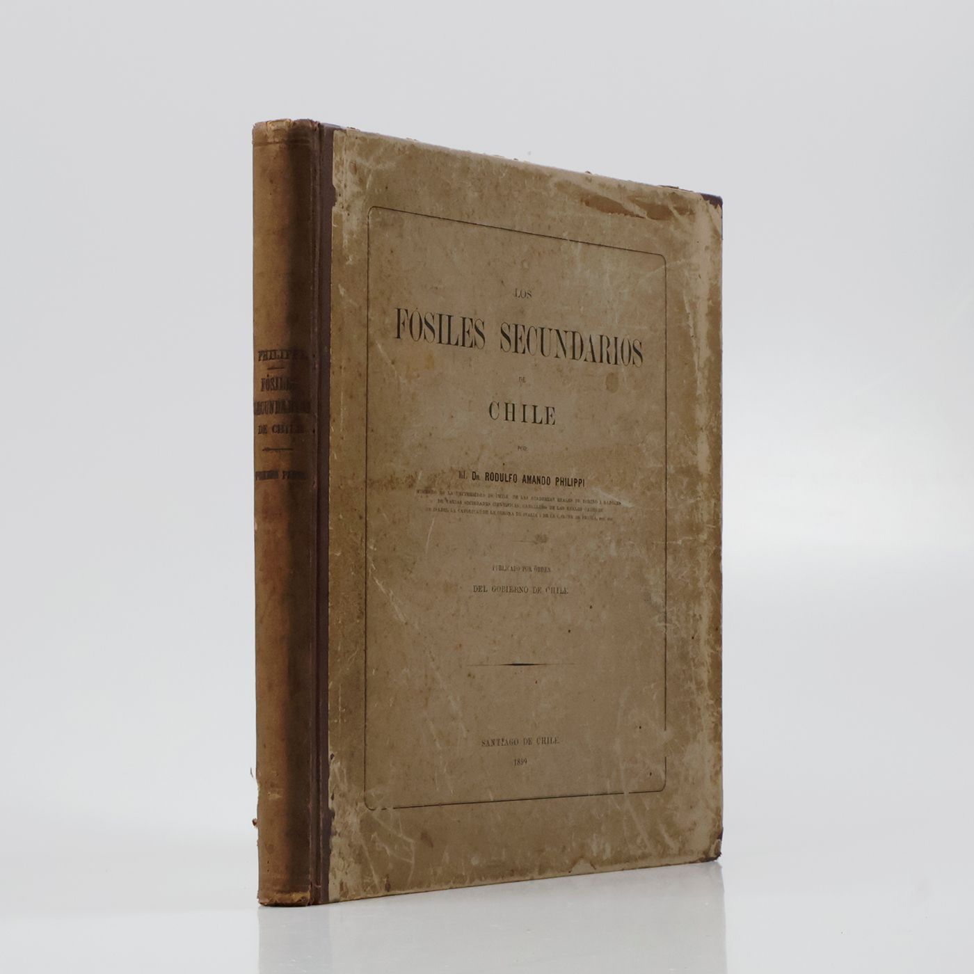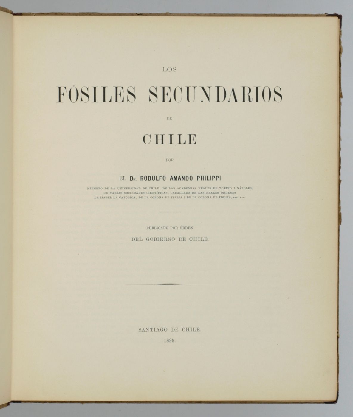 Santiago de Chile, Gobierno de Chile, 1899. Large 4to (31.2 x 26.8 cm). vi, 104 pp.; 42 fine lithographic plates. Publisher's quarter cloth over printed boards. Spine with title in black.