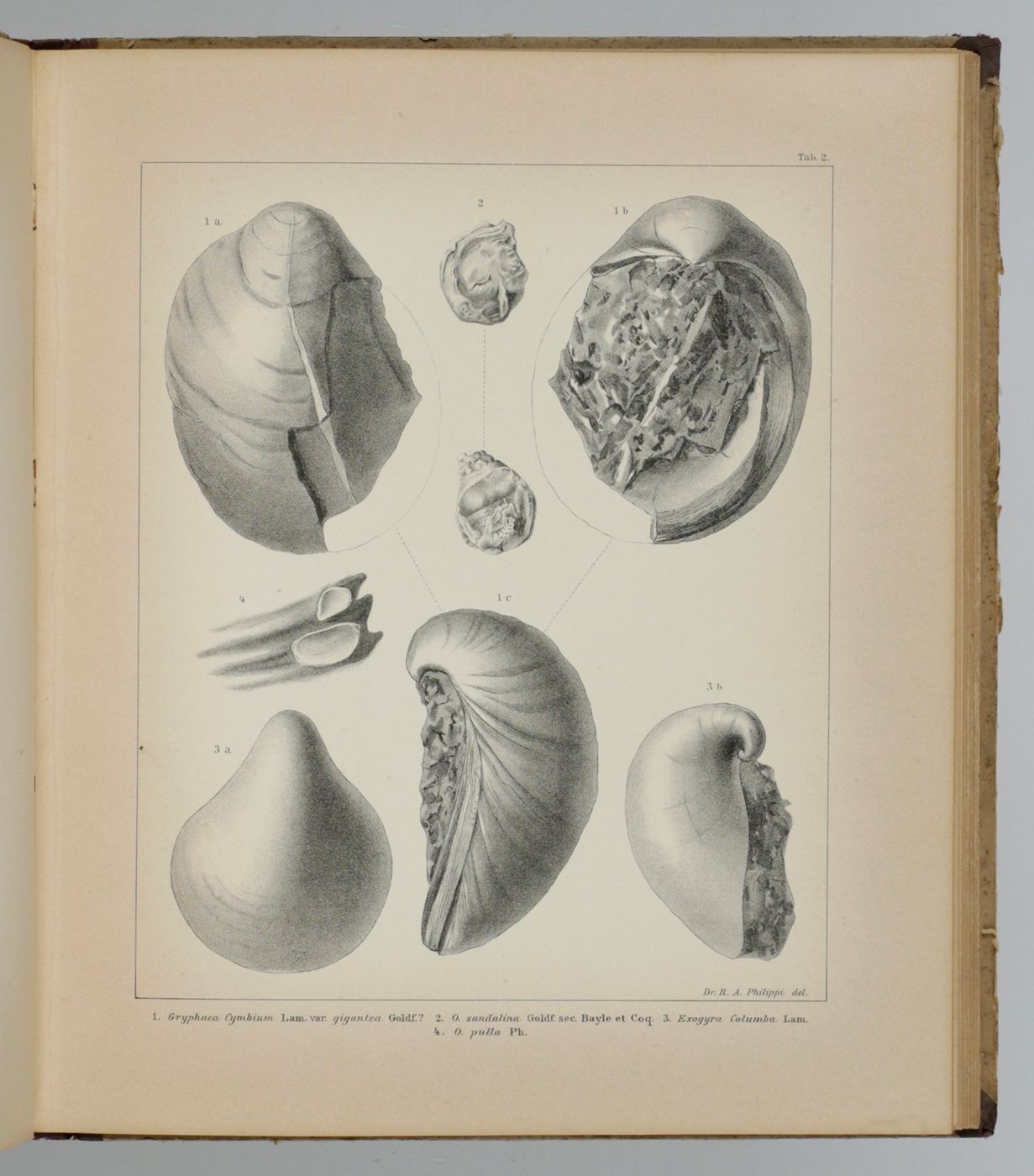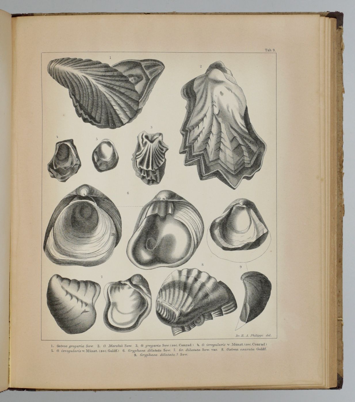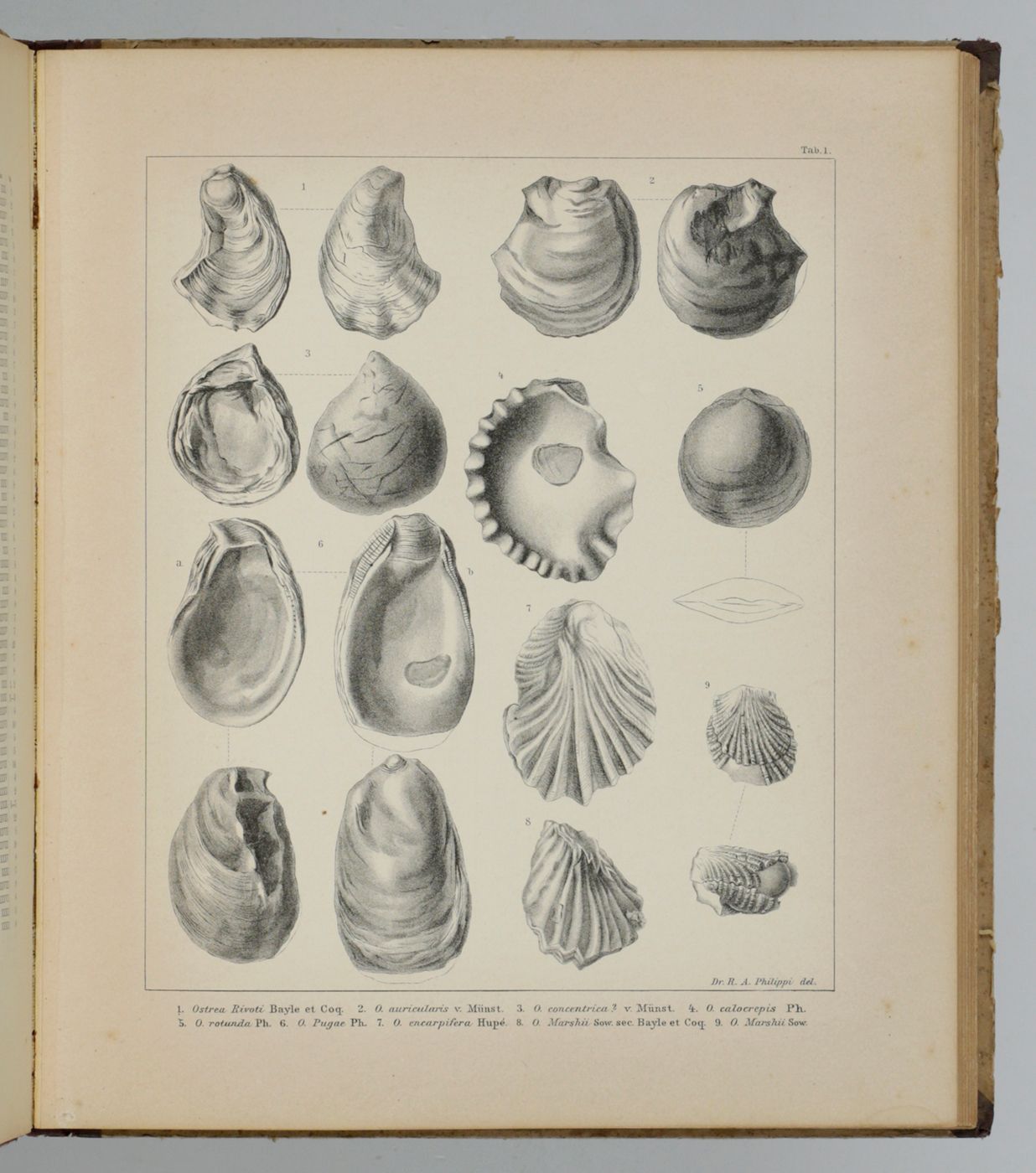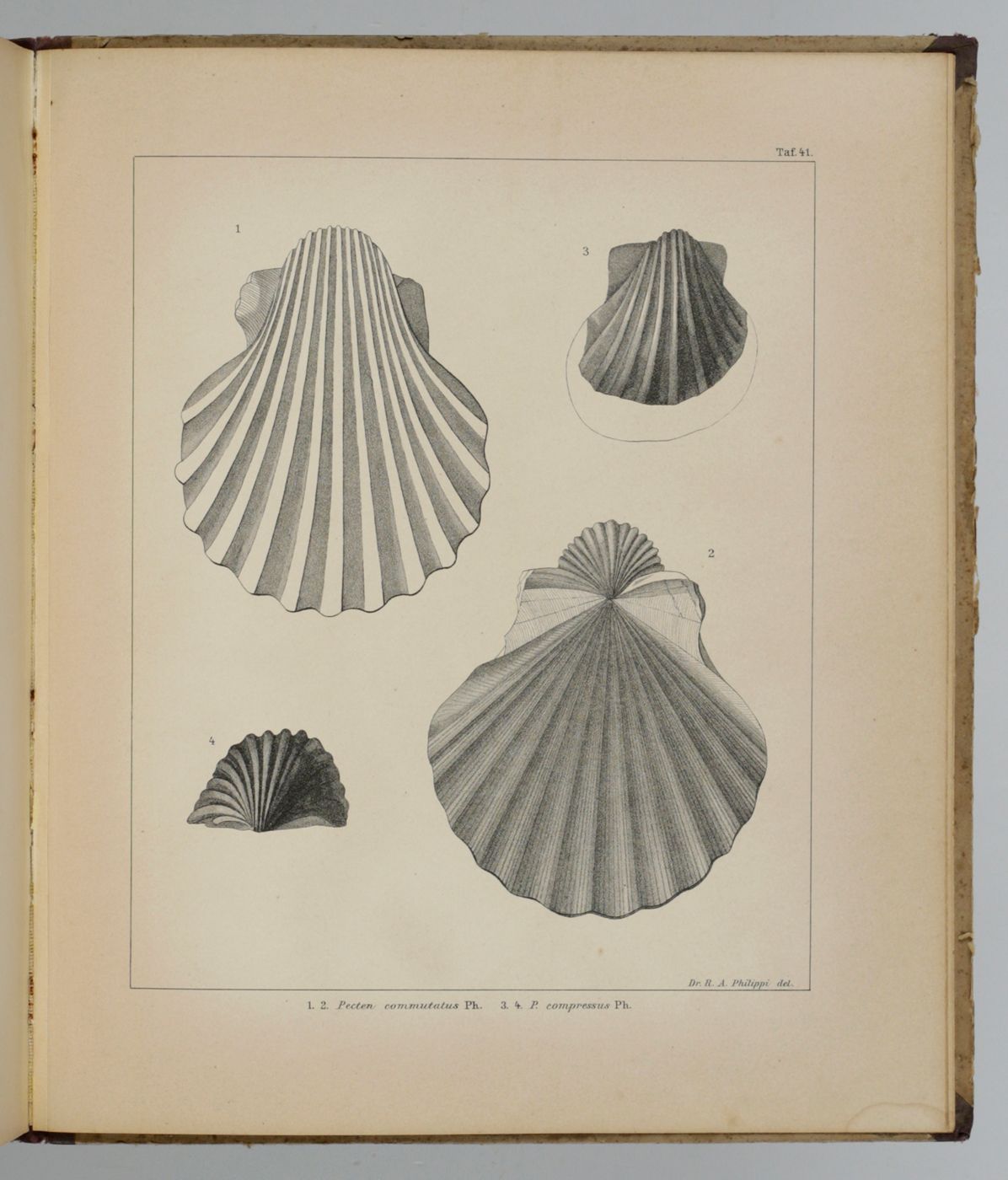 Rare first, Spanish publication of the Mesozoic fossils of Chile. Nearly all plates show molluscs, in particular bivalves, of which many are described and illustrated here for the first time. Rudolph Amandus "Rudolfo Amando" Philippi (1808-1904) was a prominent German malacologist and ornithologist who emigrated to Chile and continued his zoological researched there. He is the author of many important publications in malacology and conchology. A German edition was published too - it is rare too. Pictorial, palaeo-malacological bookplate of Jeffrey D. Stilwell mounted on the front pastedown. Some wear to spine ends and boards; rear board stained; small, marginal dampstain to the lower edge of the last few plates. Paper a bit toned, as usual. In all a very good, clean copy. Nissen ZBI, 3156.