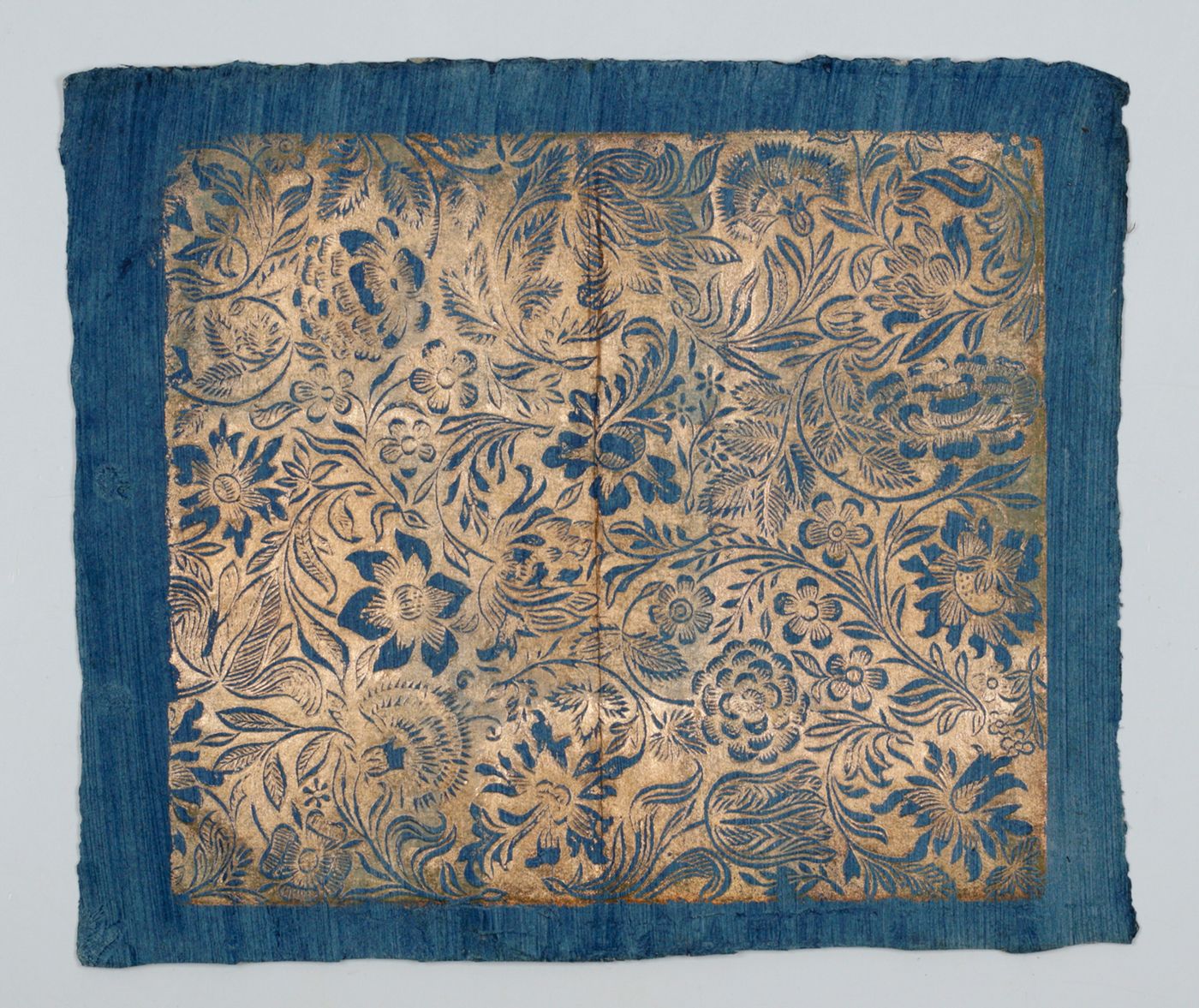 [Germany, ca. 1820]. Single sheet, with gilt floral pattern on blue-dyed wove paper (43.0 x 35.5 cm).