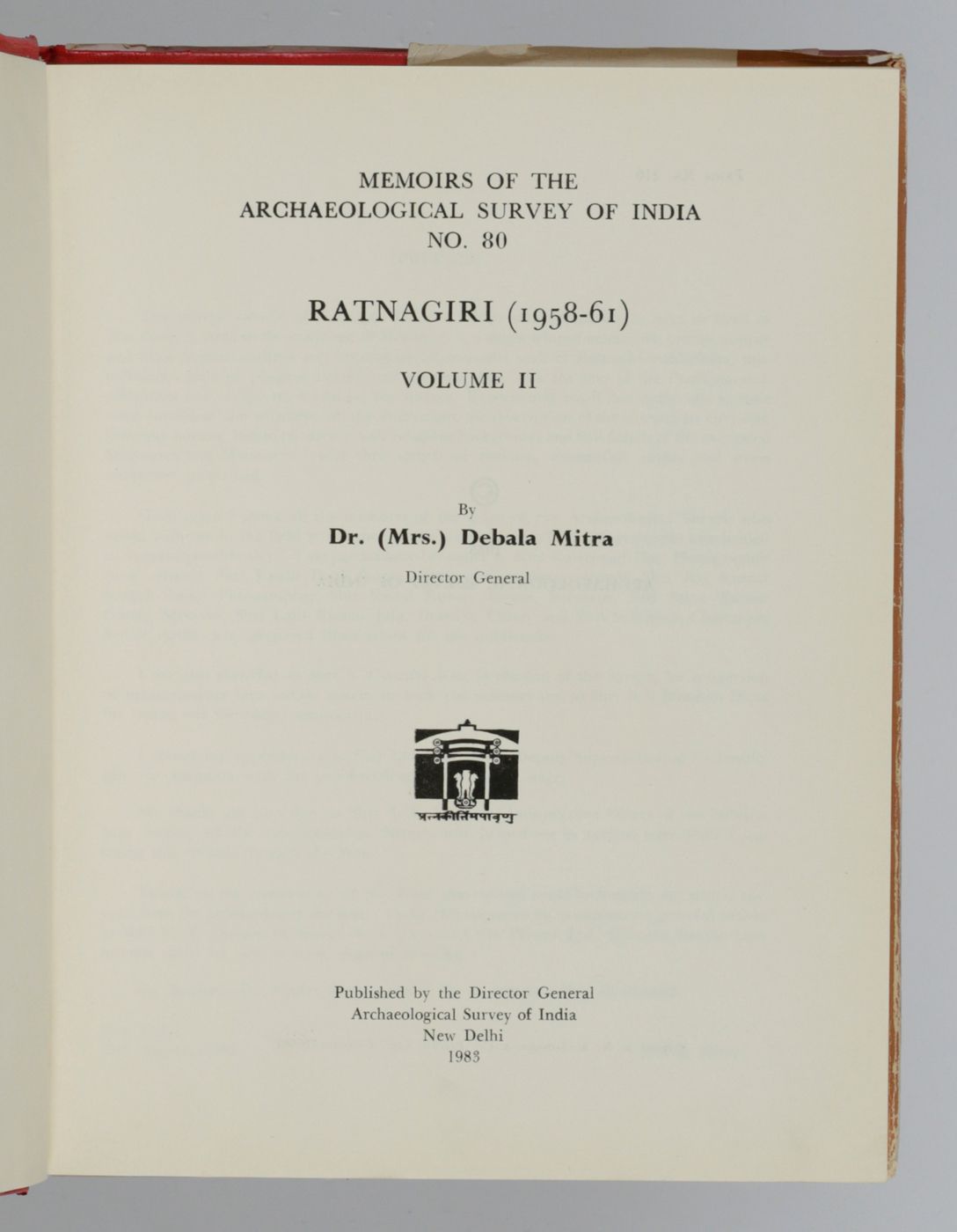 A fine monograph of the Buddhist monasteries in Ratnagiri, India, excavated between 1958 and 1961 and containing innumerable artifacts. Exceedingly well illustrated with photos and (large, folded) maps. Published by the Archeological Survey of India, as Memoir no. 80. An excellent publication. Do not confuse with the inferior later reprints. Some light shelf wear and chipping to the dust jackets, otherwise a very good, clean, and solidly bound set.