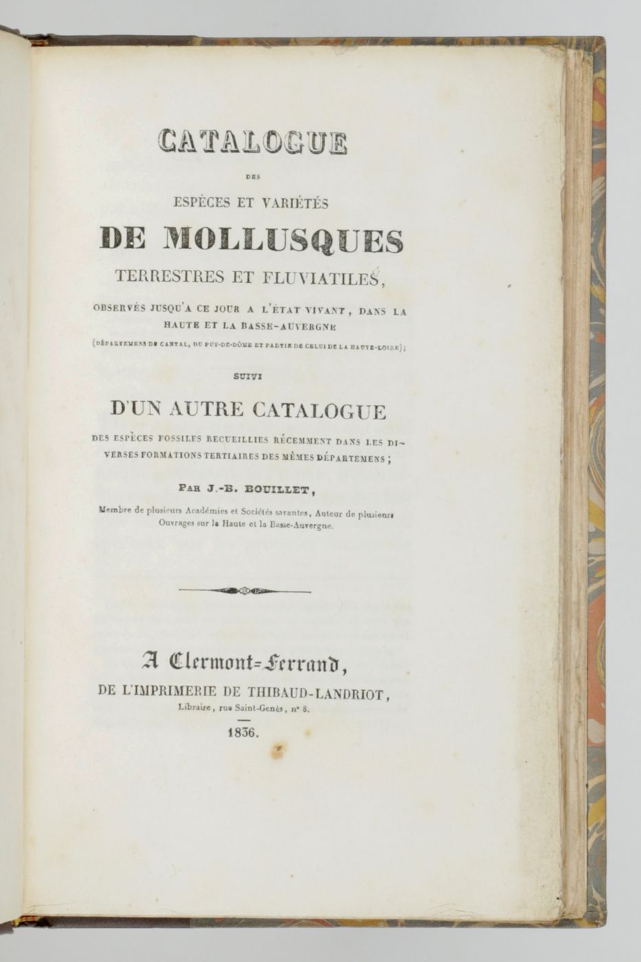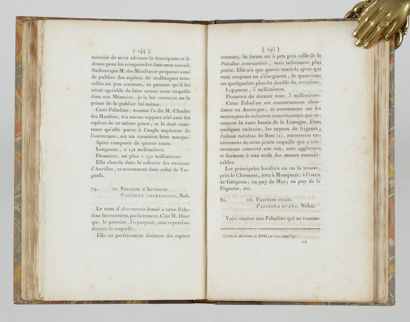 Catalogue des espèces et variétés de mollusques terrestres et fluviatiles, observés jusqu'a ce jour a l'état vivant, dans la Haute et la Basse-Auvergne (départemens de Cantal, du Puy-de-Dôme et partie de celui de la Haute-Loire); suivi d'un autre catalogue des espèces fossiles recueillies récemment dans les diverses formations tertiaires des mêmes départemens. [AND] Coquilles fossiles du calcaire d'eau douce du Cantal.