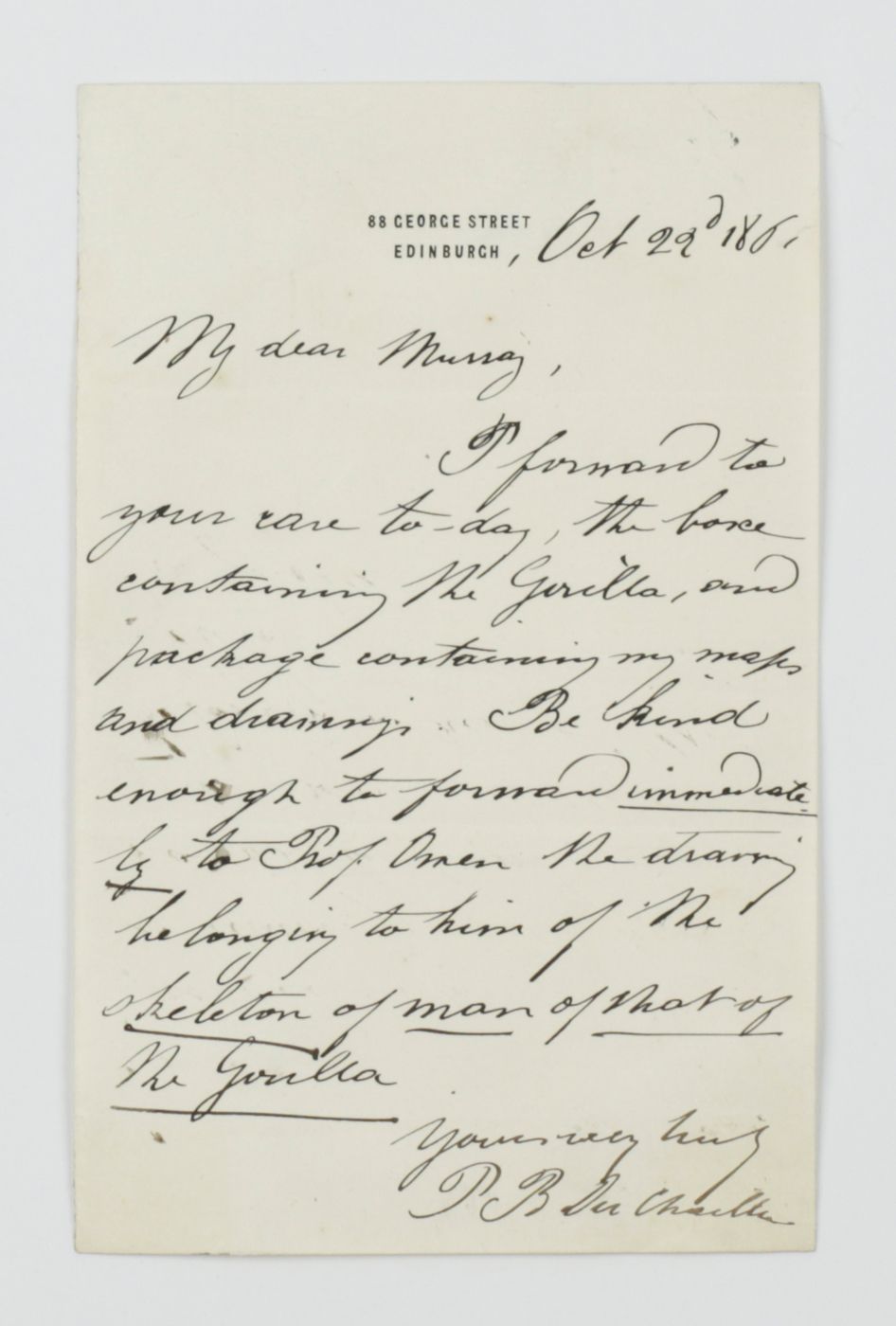 Presentation copy to Du Chaillu, including original letters