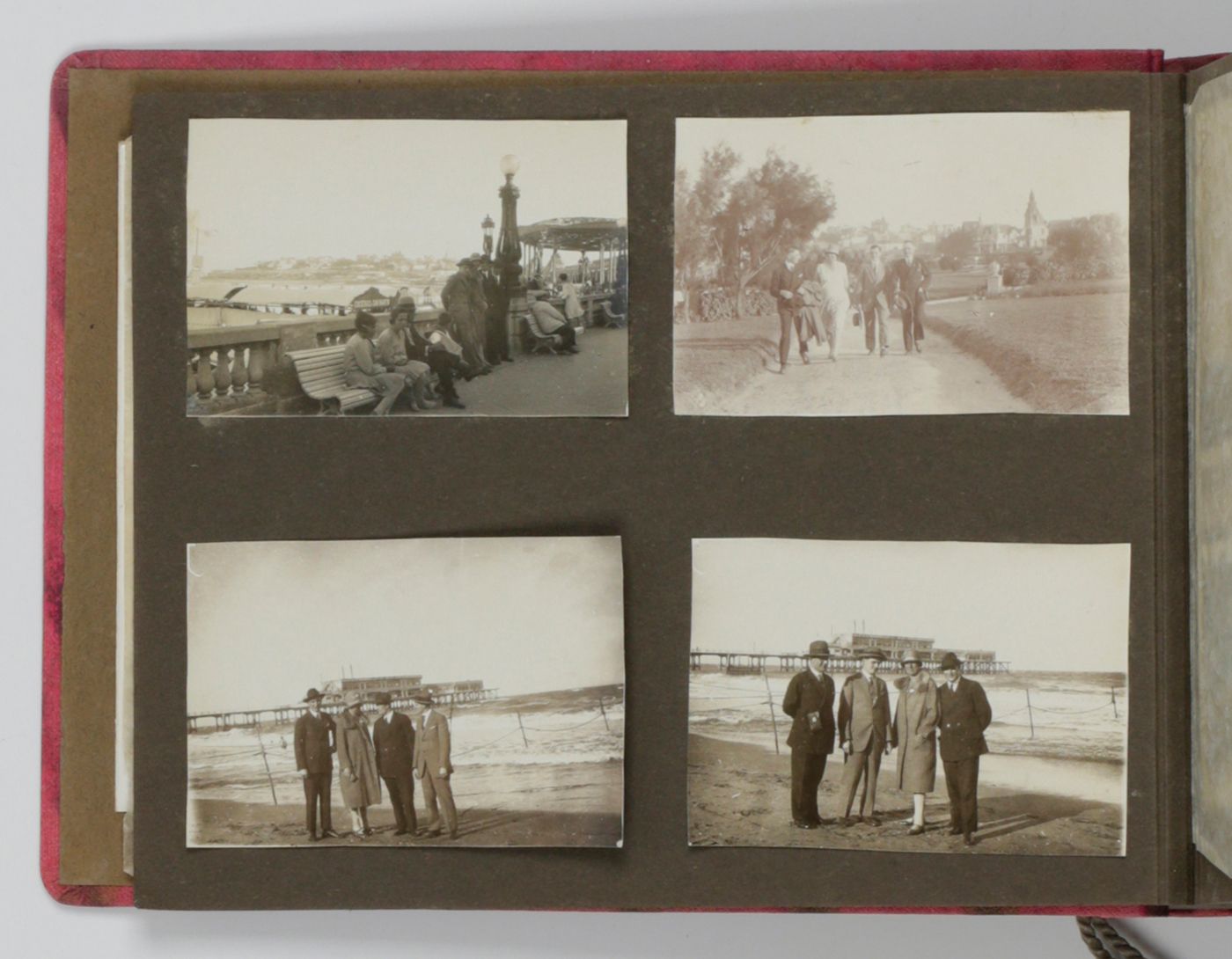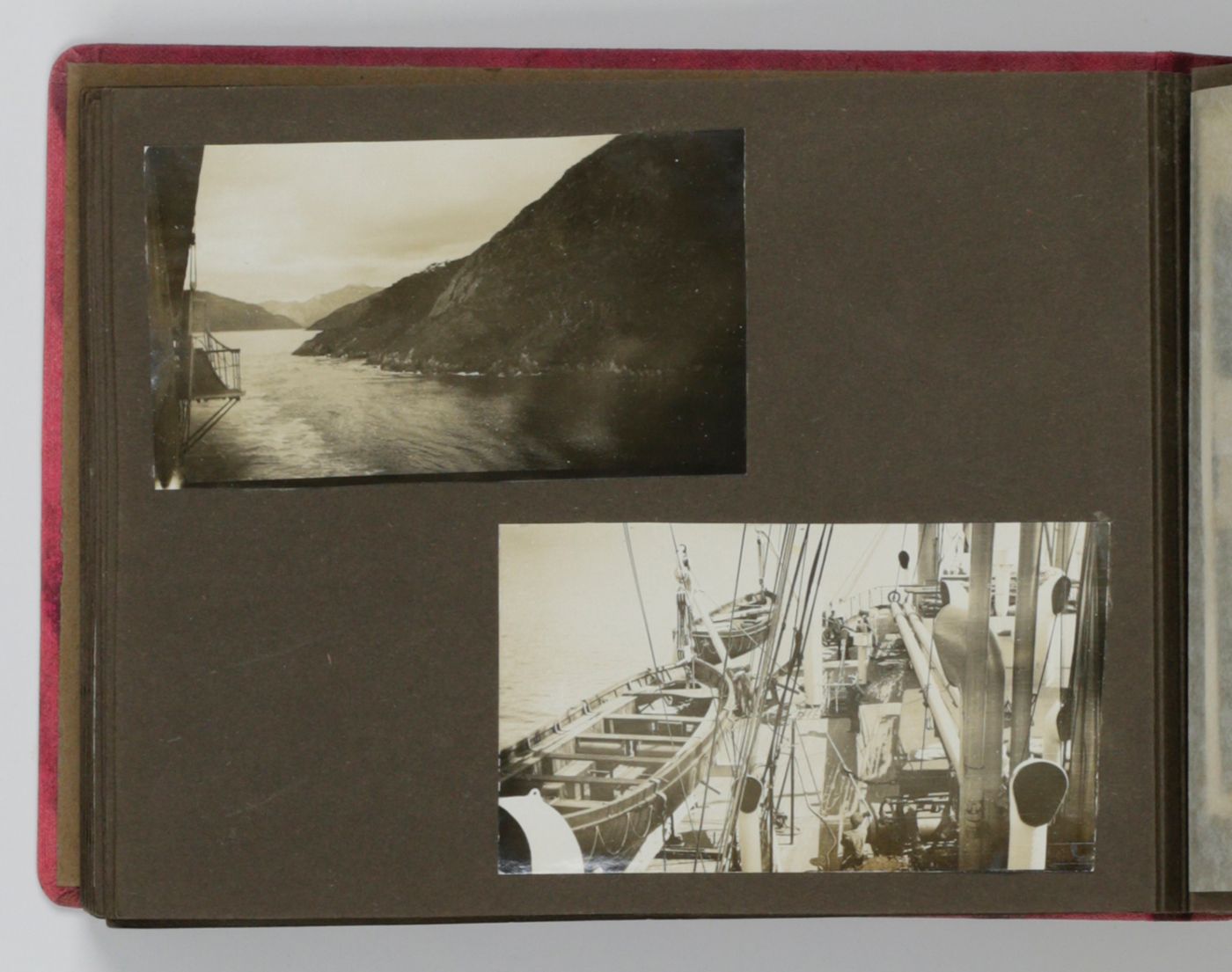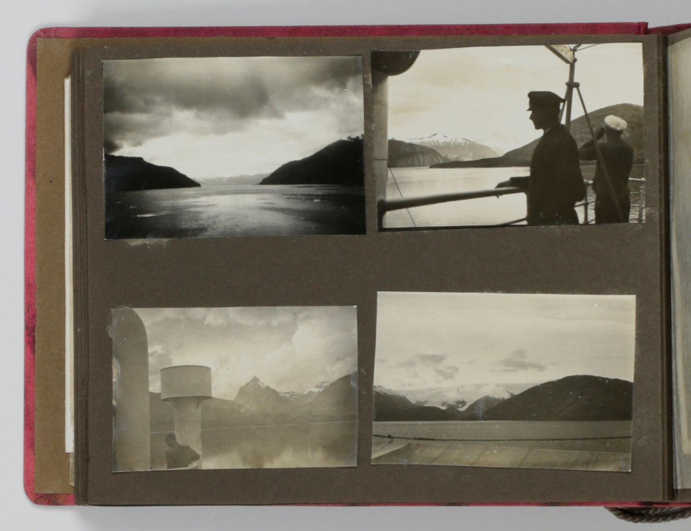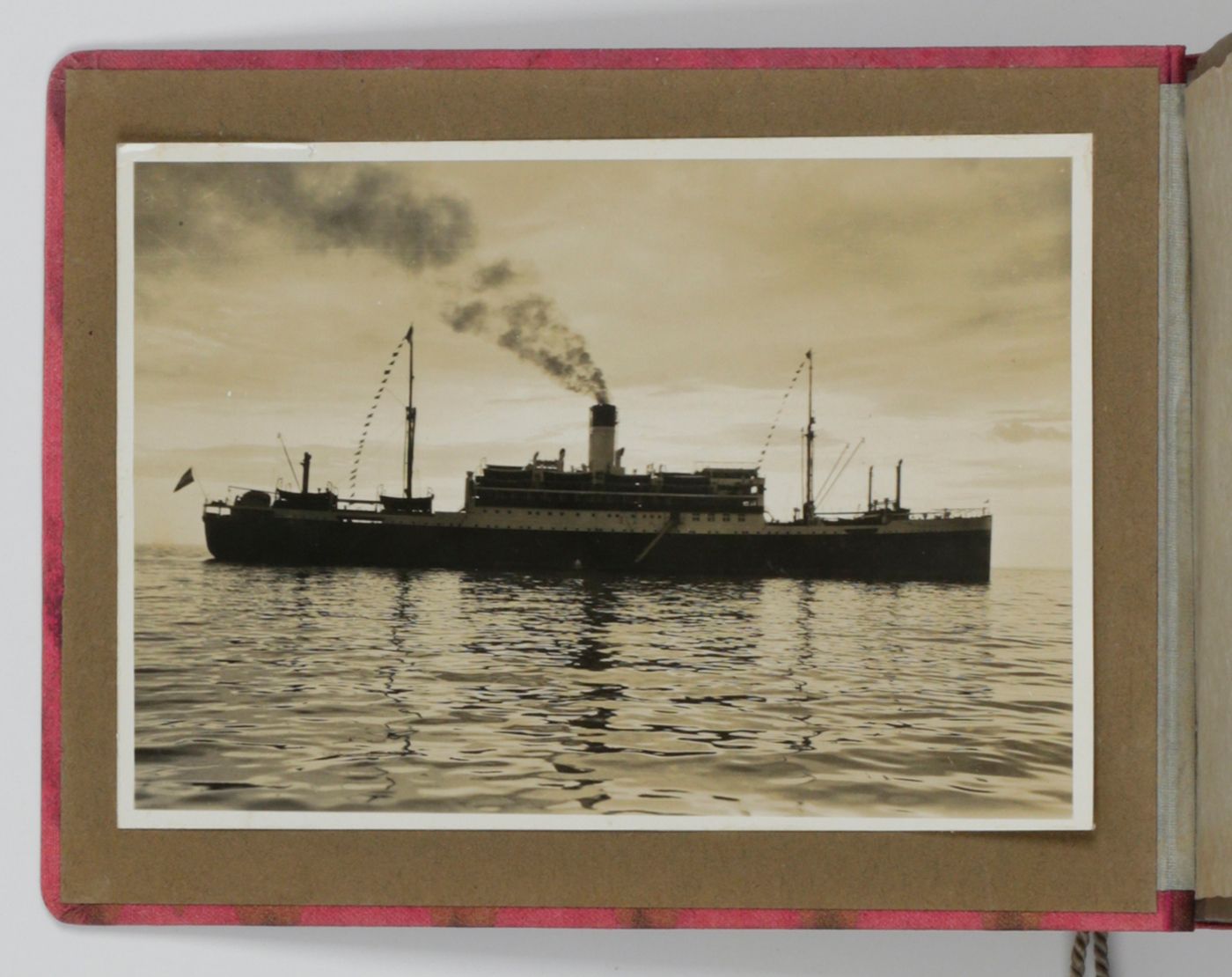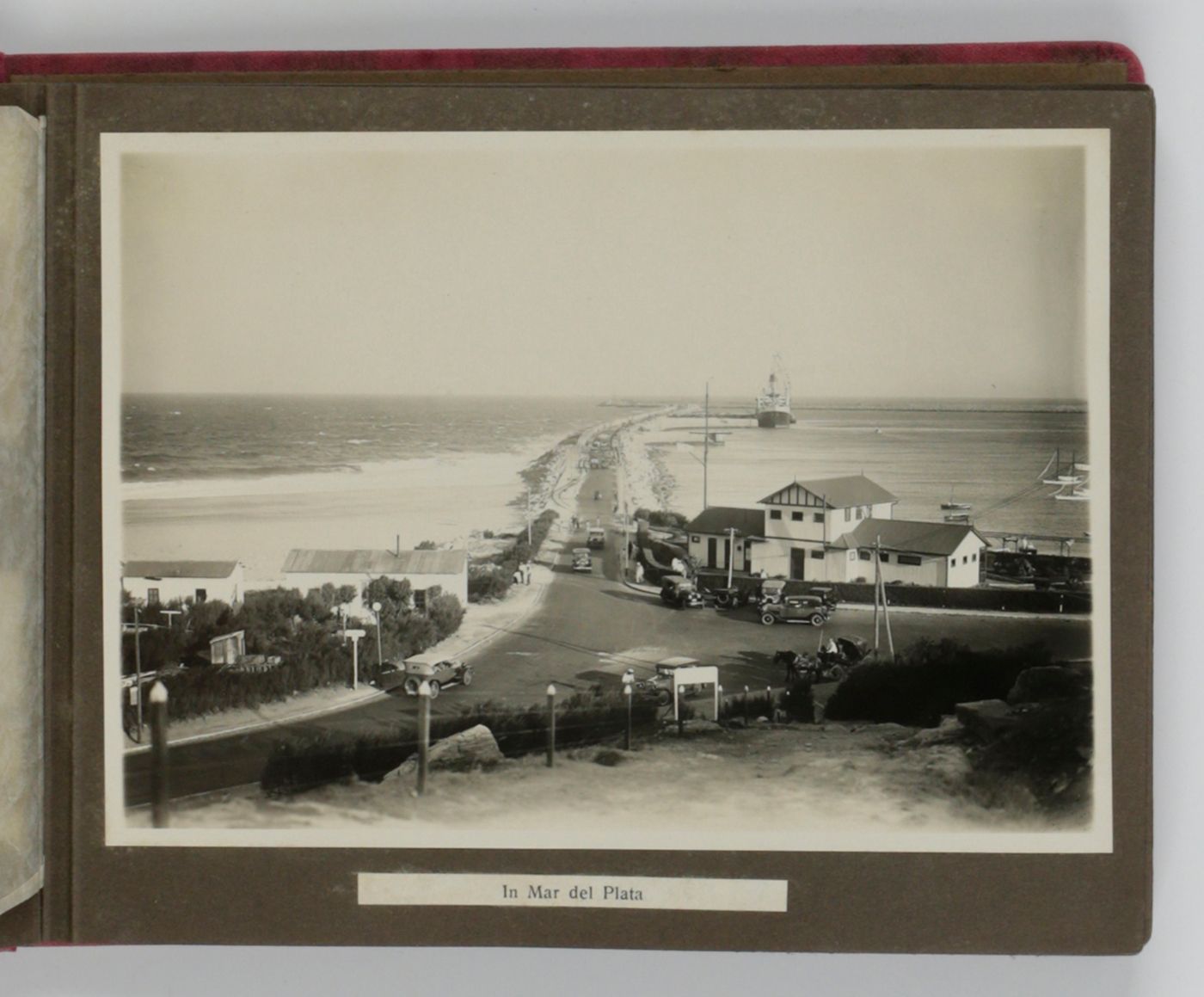 Hamburg, Hamburg-South America Line, and private German tourists, 1929. Oblong folio (14.9 x 21.5 cm). Album with printed title page; and 18 cardboard leaves, with 18 professional photos, and 52 excellent amateur photos, all mounted. Original Art Deco full cloth.