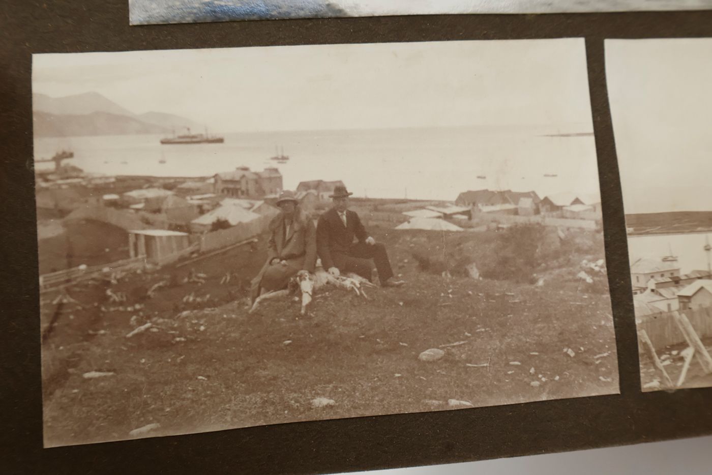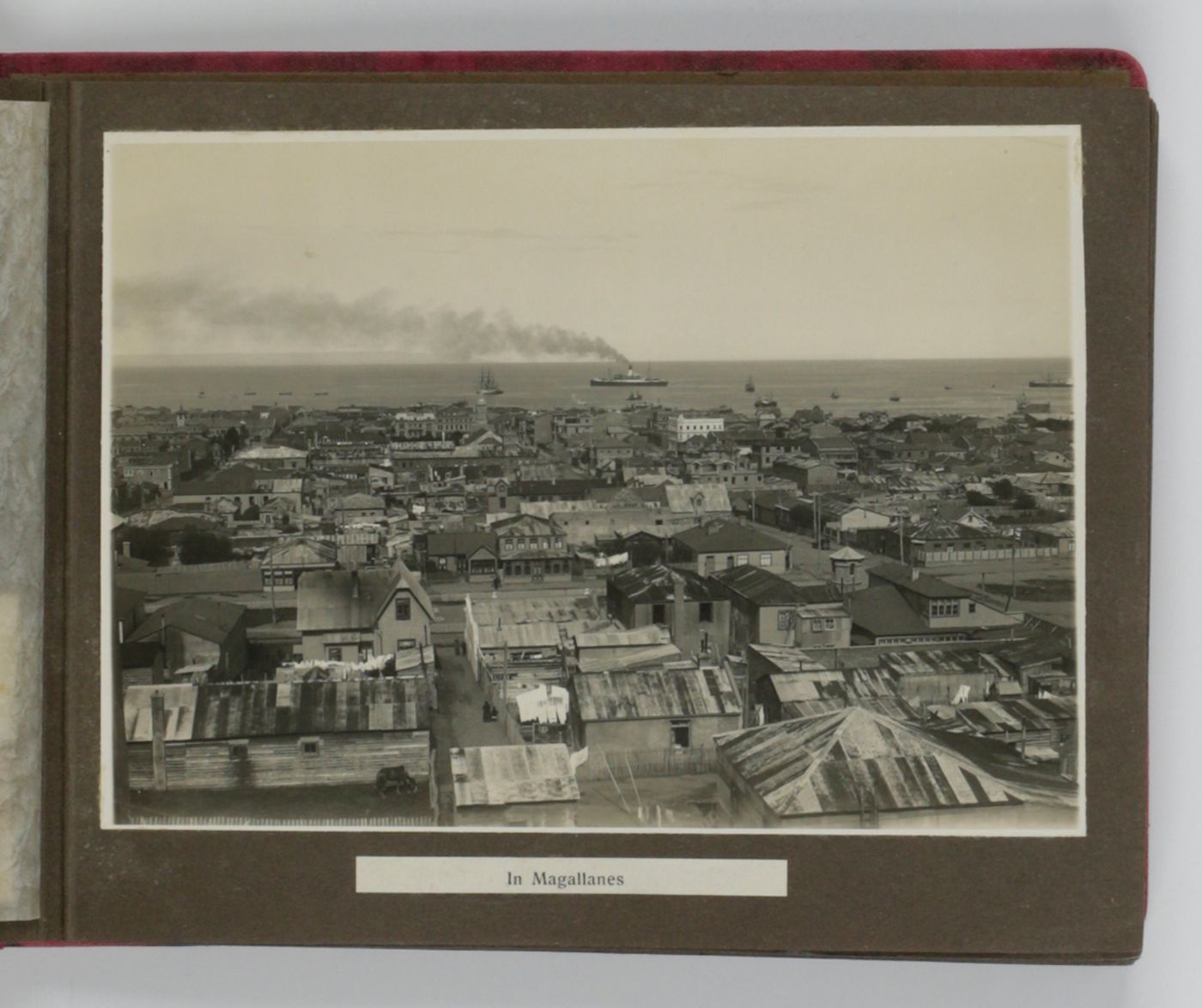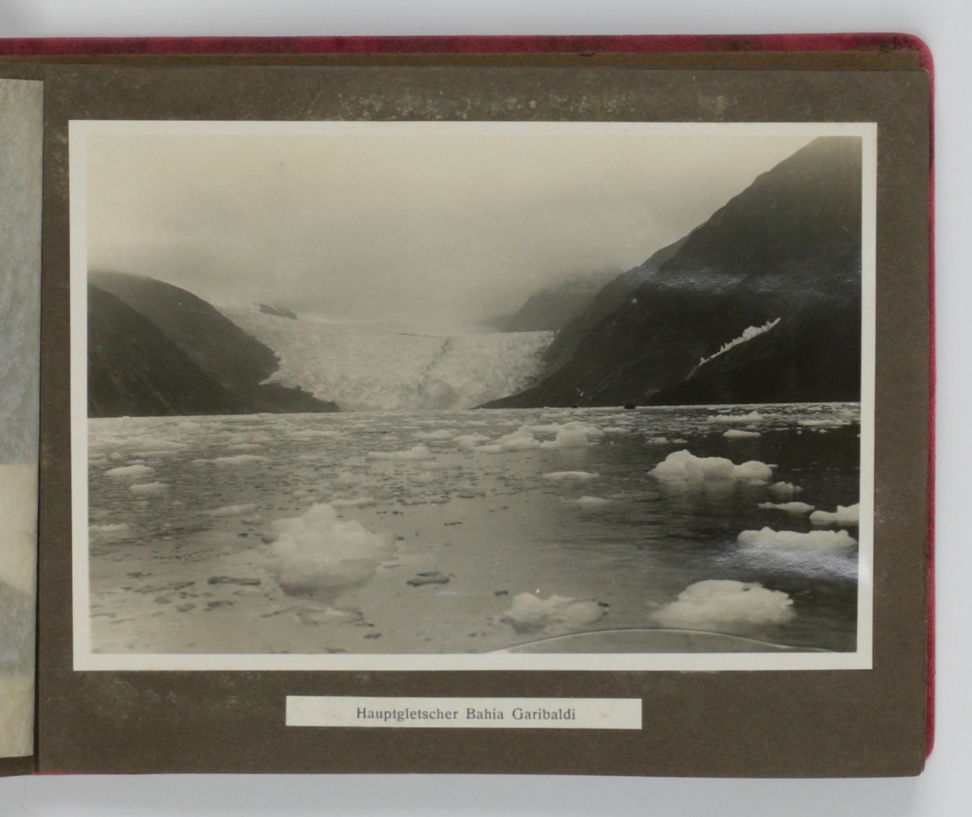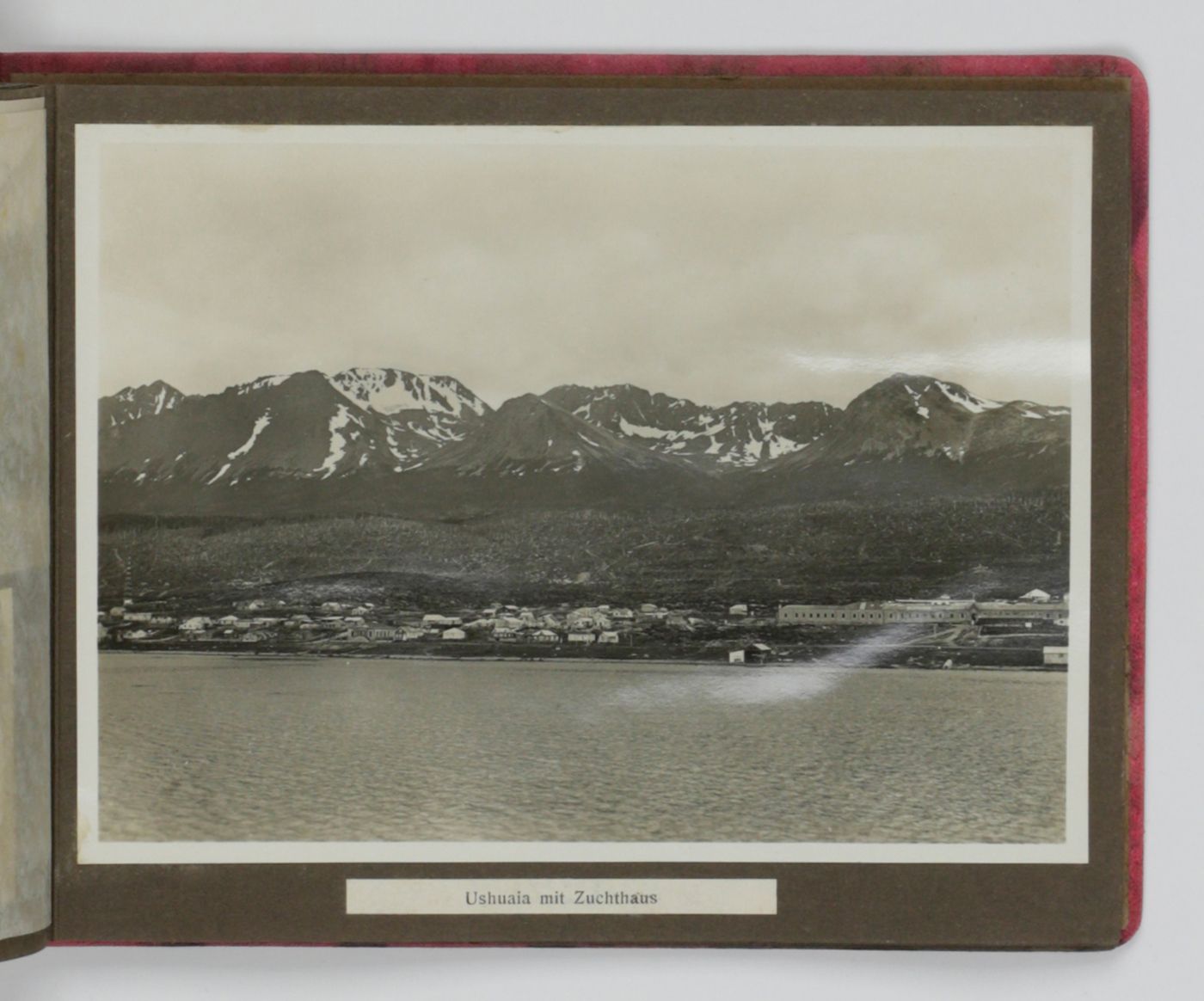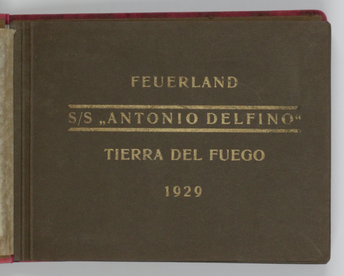 A highly interesting account, with many unique, original photos, of a cruise in southernmost South America, in particular Tierra del Fuego, by a party of German tourists. Patagonia and Tierra del Fuego have become a very popular destinations for cruises today, but this is a very early example of a cruise through this region, showing the area as it was almost one hundred years ago, and in many ways much changed since then, but, then again, with many other places hardly altered, as can be seen by comparing the photos of, e.g., Harberton, or Ushuaia, with recent photos on the internet. Views include Magallanes (Punta Arenas), "Haberton" (Harberton, on the Beagle Canal), Ushuaia, Mount Darwin, Bahia Garibaldi and the Garibaldi glacier, the steamer Antonio Delfino, the expedition ship Feuerland, etc. The Antonio Delfino "was a Hamburg South America Line steamship built 1921 at Hamburg by Vulcan Werke. The ship was built to operate on the Hamburg - South America service. In 1932 the ship was chartered to the Norddeutscher Lloyd and renamed Sierra Nevada. In 1934 she was returned to the Hamburg South American Line and the name was changed back to Antonio Delfino. In 1940 she was requisitioned by the Kriegsmarine and used as a barracks ship at Kiel, and from 1943 at Gdynia [Gotenhafen]. In 1944 she became a command ship for the Admiral of Submarines at Gotenhafen. In 1945 she was used to evacuate refugees and wounded military personnel from Gdynia, carrying a total of 20,522 people in five voyages. In May 1945 she was seized by British forces in Copenhagen. She was taken over by the Ministry of War Transport and managed by the Anchor Line. The ship was refitted as a troopship by John Brown & Co, Clydebank. and renamed Empire Halladale. On August 31, 1946, she inaugurated a troopship service between Tilbury and Cuxhaven, during which period she also transported families of UK military personnel who were to live in Germany, later serving in the Middle East and Far East. Laid up in October 1955 at Glasgow. Scrapped in February 1956 at Dalmuir, West Dunbartonshire" (Heritage Ships website). Very rare. We found no record of other copies of the printed edition. All photos in very good condition, as are the original covers.