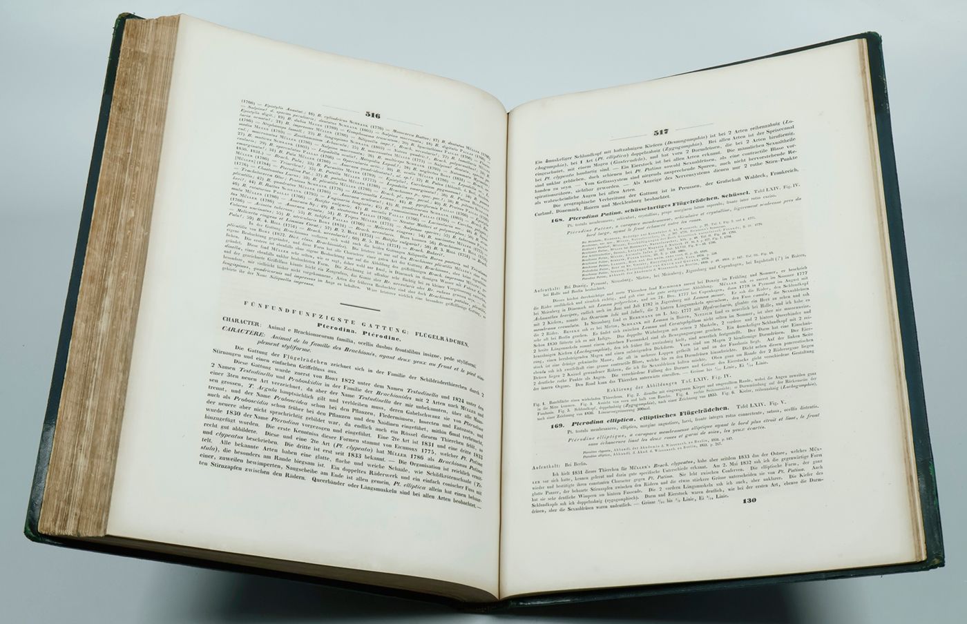 Leipzig, Leopold Voss, 1838. Two volumes in two. Folio (46.3 x 33.3 cm).Two title pages; , xviii, [iv], 548 pp; 64 engraved plates in fine, original hand-colouring. Uniform contemporary half morocco over pebbled boards. Spines with five raised bands; compartments with gilt floral vignettes, titles, and logos. Marbled endpapers.