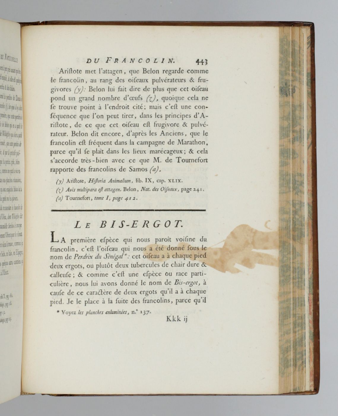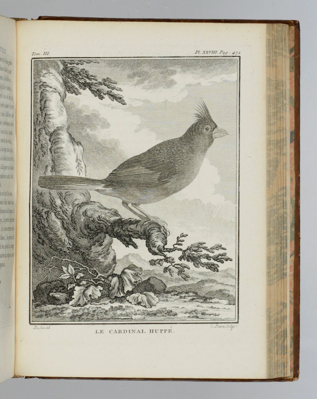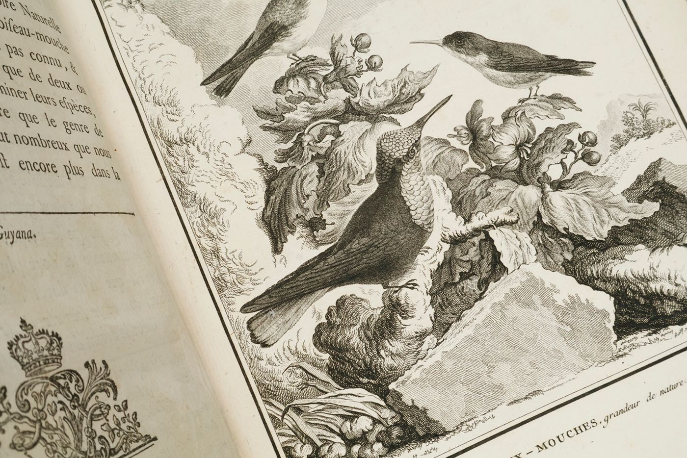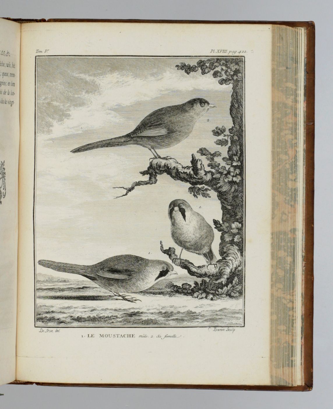 The complete, rare, birds part of the first 4to edition ("PMM edition") of this large and important series on natural history by Georges-Louis Leclerc, Comte de Buffon (1707-1788). Together they form a coherent segment of the whole work. Provenance: On the front pastedowns a bookplate, Bibliothèque du C.en [= Citoyen] Capon, over an older, usually removed, bookplate with coat of arms, of the French lawyer and politician Count François-Antoine de Boissy d'Anglas (1756-1826); small stamp "Gleizes Not.re. JMP" on titles. Some light rubbing to the boards edges and spine ends; apart from some minimal spotting, and a page text with a brown smudge, exceptionally clean. A very attractive, uniformly bound set. Ashworth and Bradley (1984). Theories of the Earth 1644-1830. The history of a genre, 25; Nissen ZBI, 672; PMM 198 (in part); Casey Wood, p. 267. Not in Nissen IVB.