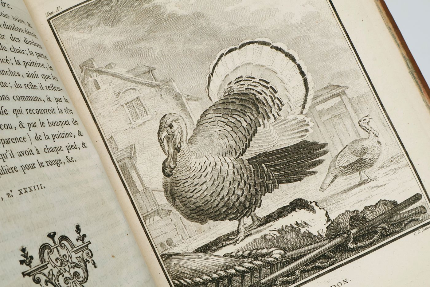 Paris, l'Imprimerie Royale, 1770-1783. Nine parts in nine. 4to (25.3 x 19.3 cm). Title pages with allegorical engraved vignettes, numerous engraved head and tail pieces. 5617 pp. (I. (1770) [iv], xxiv, 496; II. (1771) [v], 560; III. (1775) iv, [xi], 502, xcvii; IV. (1778) v-xvi, 590, xxviii; V. (1778) v-xv, 546, xxix; VI. (1779) iii-xvi, 703; VII. (1780) xvi, 554, xcvi; VIII. (1781) viii, 498, xlii; IX. (1783) v-viii, 438, xxx, 284). 262 engraved plates [29; 27; 31; 27; 22; 25; 31; 39; 31]. Uniform contemporary full tree calf. Spines with five raised bands, rich gilt compartments with floral vignettes, two morocco labels with gilt titles. Marbled endpapers. Marbled edges.