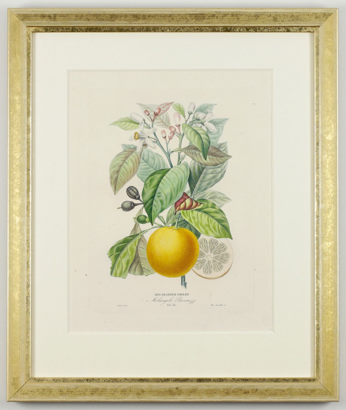A fine set of splendid illustrations from the most beautifully illustrated work on citrus fruits ever, by the French pharmacist, botanist, malacologist and geologist Joseph Antoine Risso (1777-1845) in cooperation with the French illustrator Pierre Antoine Poiteau (1766-1854). "It contains exquisite drawings of every variety of orange, lemon and grapefruit, and their congeners... A beautiful and inspiring work" (Sitwell). Originally coloured copies, such as in this set, are utterly rare and expensive. A very good, clean set. Nissen, BBI 1640; Sitwell-Blunt, 73; Stafleu and Cowan, 9248.