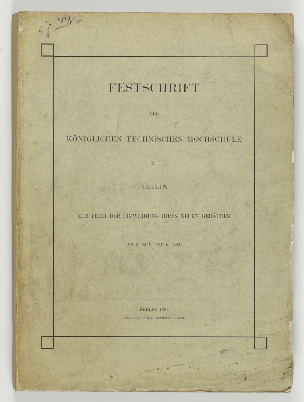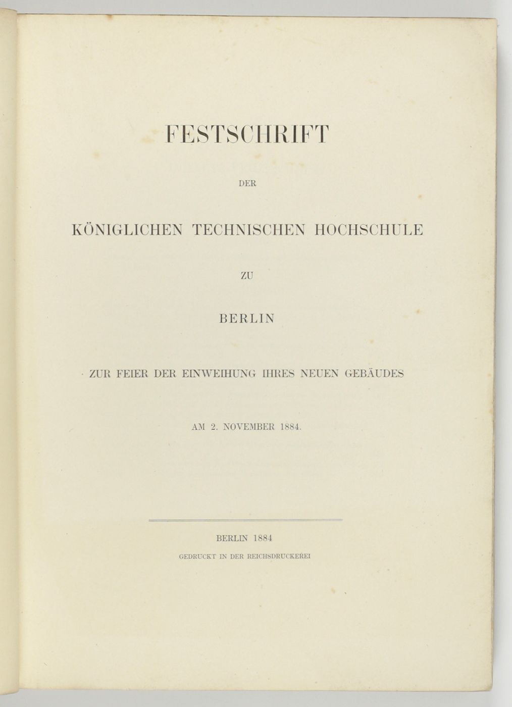 Festschrift der Königlichen technischen Hochschule zu Berlin. Zur Feier der Einweihung ihres neuen Gebäudes am 2. November 1884.