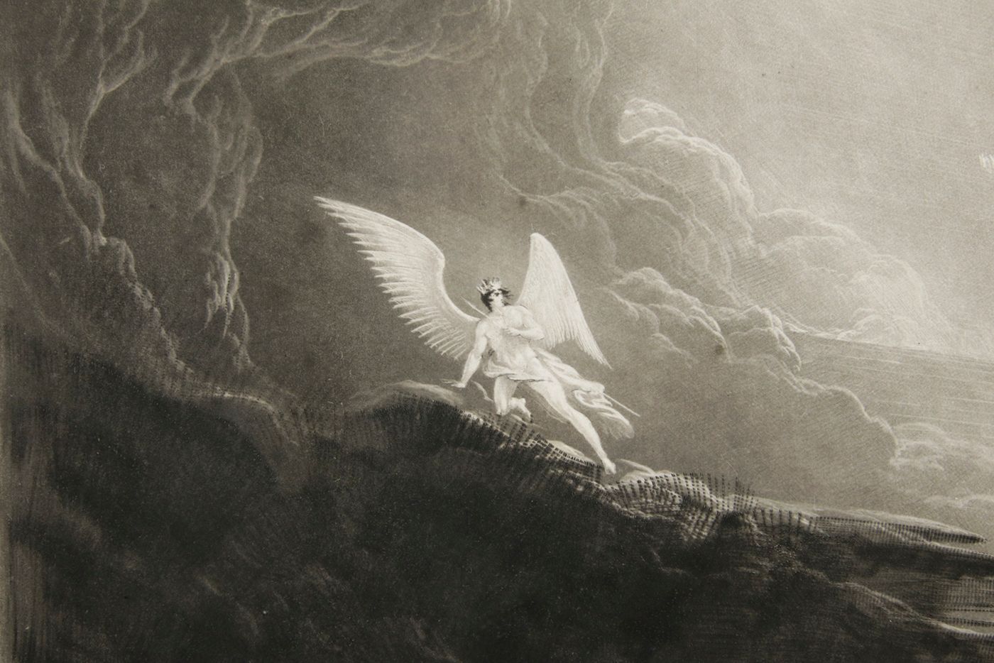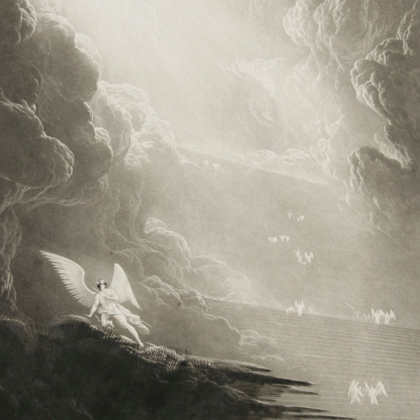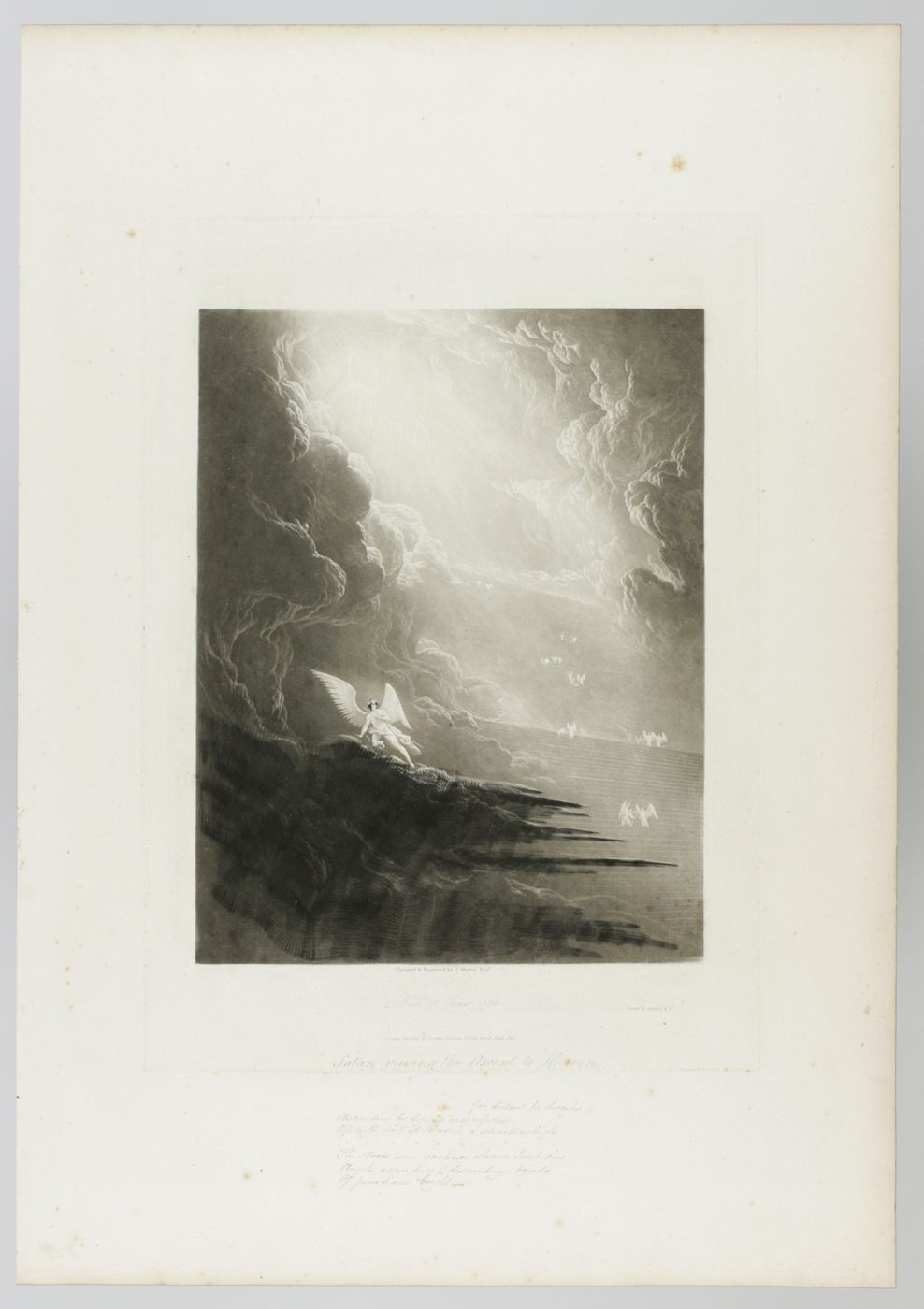 Paradise lost. Satan viewing the Ascent to Heaven. Large(st) mezzotint plate from the large-size edition.