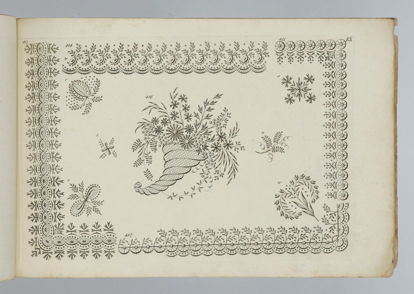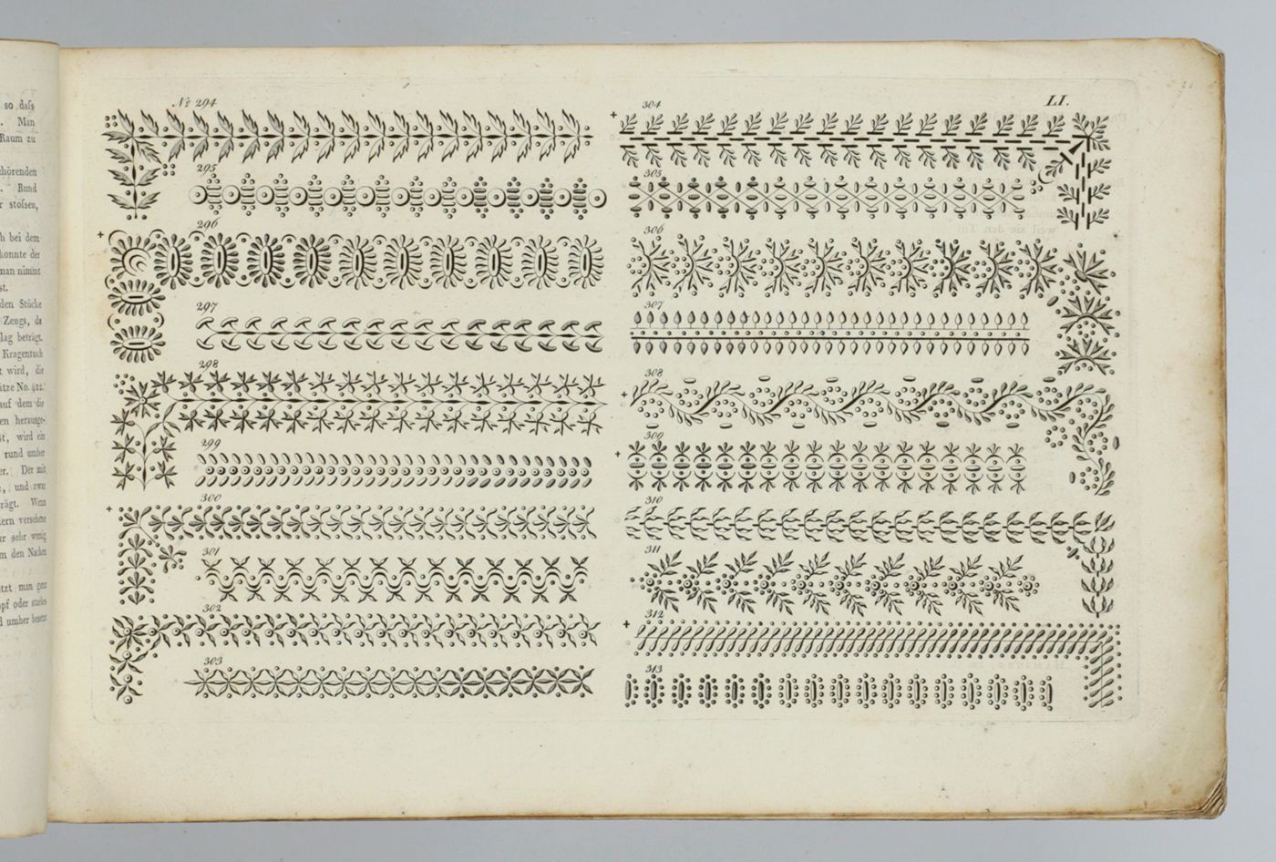 Sammlung neuer Muster zum Sticken in Plattstich und Tambourin gezeichnet von einer Hamburgerin.