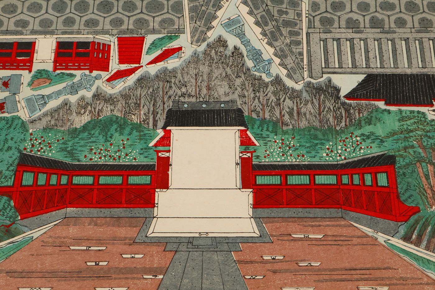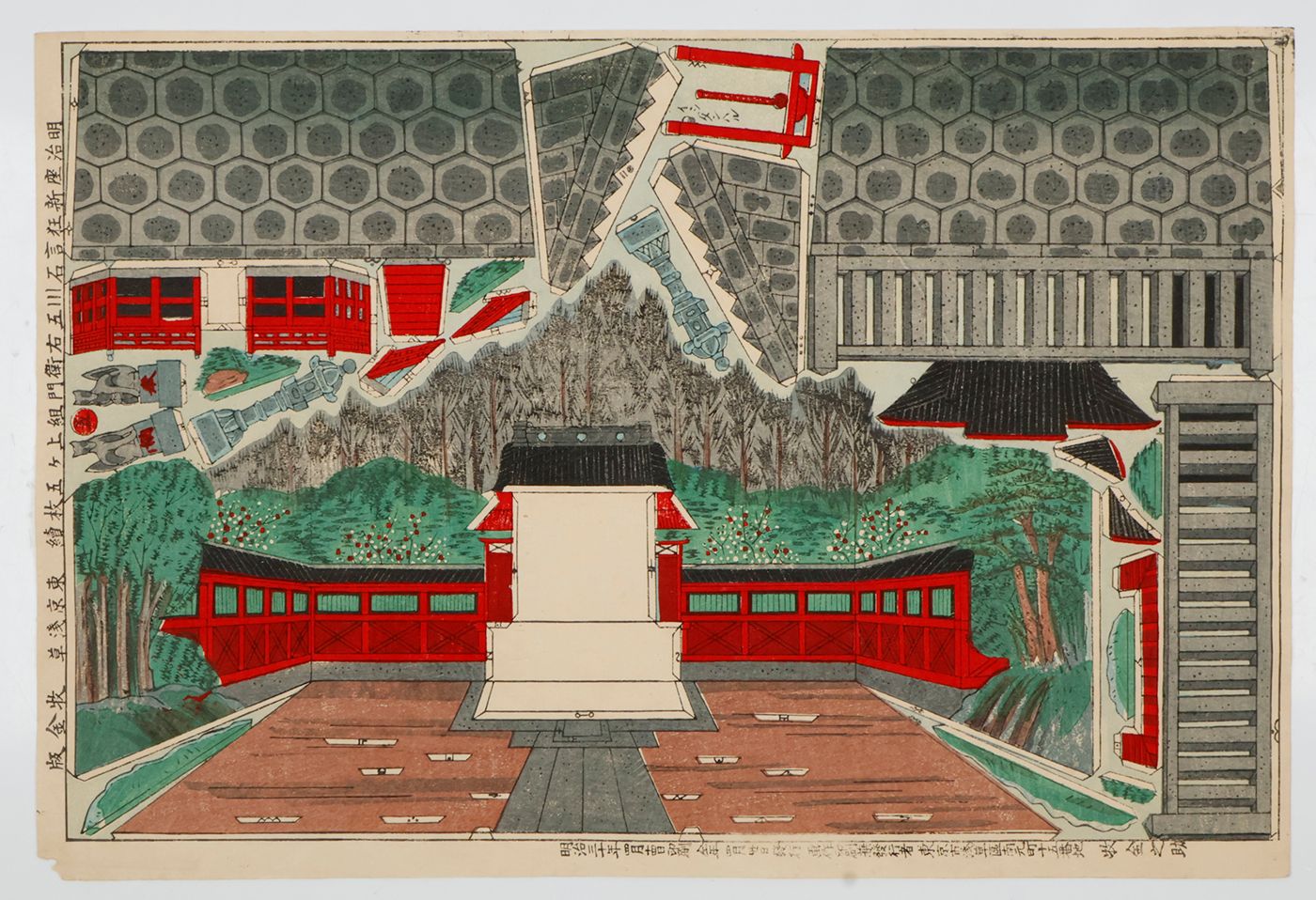 Tokyo, Maki Kinban, 1897. Five hand-coloured plates. Folio (37.0 x 24.0 cm). One in passepartout (50.0 x 35.0 cm).