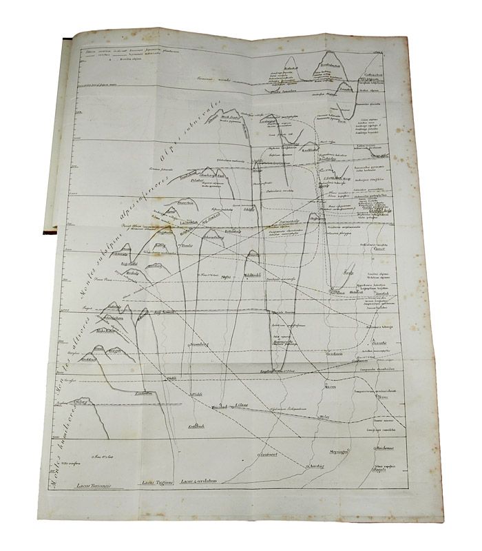 Göran "Georg" Wahlenberg (1780-1851) was a Swedish naturalist and plant geographer who promoted floristic and systematic research in Sweden. "In 1812-14 Wahlenberg travelled in Switzerland... His researches in the Swiss alps resulted in the book 'De Vegetatione et Climate in Helvetia...', in which he gives an account of the plant regions and their designations, the tree limits, and the lower and upper limits of the various plants, comparing also the vegetation in northern Switzerland with that of Lapland". (Fries, Short History of Botany in Sweden, p. 69). The first plate is a nice profile of the vegetation in the Swiss Alps. Some - mainly marginal - foxing. Front pastedown paper partly missing, a few pages a bit foxed, mostly marginal; title page and dedication page leaves with a restoration in upper margin, but in all a very good copy in a nice contemporary binding. Pritzel, 9913; Stafleu and Cowan, 16519.