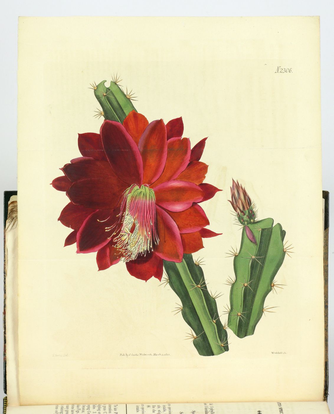 Curtis' Botanical Magazine became the longest running botanical journal in history. It was published under various titles bearing Curtis' name until 1983. William Curtis (1746-1799) was an apothecary who sold his business to concentrate on his real interest: the study of natural history. He began the Botanical Magazine in 1787, a journal devoted to decorative and unusual plants that appealed to gardeners. Fore edges uncut. Title pages are dated 1793 onwards. Some plates with faint (ranging to light) offsetting to the white background of the image. A few pages and plates slightly browned or age-toned. The hand-colouring of plates still bright. Plant number 120 is present uncoloured, without text. An index to plant families, in a contemporary hand, is present on the blank versos of the volume indexes, or as a separate blank sheet. Overall, a good set in a contemporary binding with expertly renewed flyleaves. Two volumes expertly rebacked in matching green morocco, some of the boards with new, marbled paper in matching contemporary style. Hunt 184; Nissen BBI, 2350; Sitwell Great Flower Books, 2; Stafleu and Cowan, 1290.For more images of this title, please visit the following link: https://goo.gl/photos/XD9F5hpcHi67xSKM9