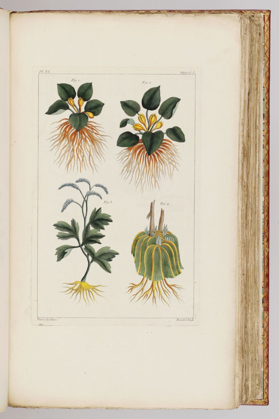 Herbier ou collection des plantes medicinales de la Chine d'après un manuscrit peint et unique qui se trouve dans la Bibliotheque de l'Empereur de la Chine, pour servir de suitte a la collection des fleurs qui se cultivent dans les Jardins de la Chine et de l'Europe. [AND] Collection précieuse et enluminée des fleurs plus belles et les plus curieuses qui se cultivent tant dans les jardins de la Chine, que dans ceux d'Europe, dirigée par le soince et sous la conduittes de Mr. Buc'hoz. Ouvrage egalement utile aux naturalistes, aux fleuristes, aux peintres, aux dessinateurs, aux directeurs des manufactures en porcelaine, en fayance et en etoffes de soye, de laine, de coton et autres artistes. Pour servir de Suite à l'Histoire naturelle et Oeconomique des 3. regnes de la nature. Partie II. Plantes les plus belles qui se cultivent dans les jardins de l'Europe.