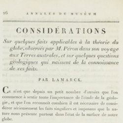 Considérations sur quelques faits applicables à la théorie du globe, observés par M. Péron dans son voyage aux Terres Australes, et sur quelques questions géologiques qui naissent de la connoissance de ces faits.