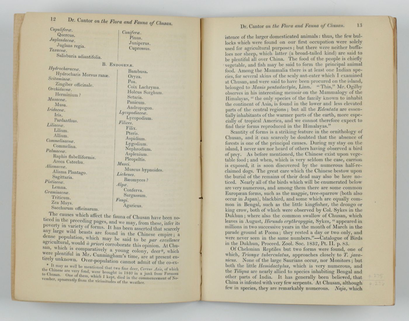 General features of Chusan, with remarks on the flora and fauna of that island.
