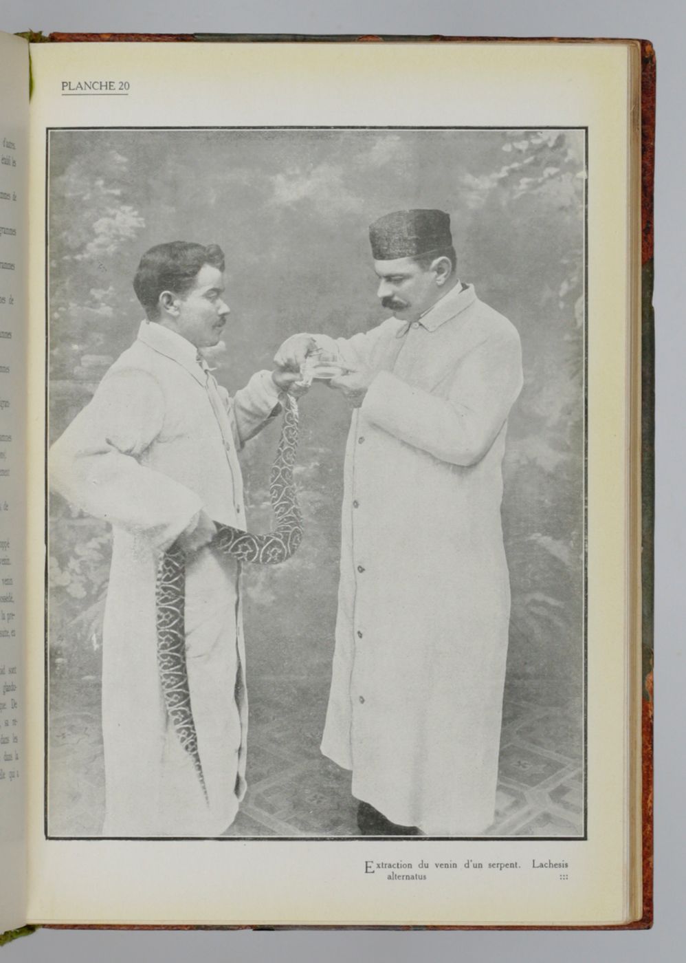 Written by the Brazilian physician Vital Brazil Mineiro da Campanha (1865-1950) famous for his discovery of a versatile anti-venom serum used against the bites of snakes of the genera Crotalus (rattlesnakes), Bothrops (pit vipers) and Elaps (coral snakes). Brazil was Director of the Serum Therapy Institute of the State of São Paulo, Brazil. Due to Brazil's efforts, snake bite mortality decreased from 25-30% to a mere 2% (Adler). This is the expanded, updated second edition, translated by J. Maibon. All editions are very uncommon, if not rare. Provenance: Inscribed on the first blank by Arthur L. Guerra, stating that this book was presented to him by the author, during the Second Pan American Scientific Congress at Washington [DC] in December 1915. Printed record, stating purchase in 2010 from Frank Mikesh Natural History Books mounted on front free endpaper recto. Boards and spine a bit worn at edges; binding a bit weak, one plate with an old repair, mostly visible on the blank verso; otherwise, however very good and complete. Adler 2, pp. 129-130. Neither in Cat. BM(NH), nor in Nissen, ZBI.