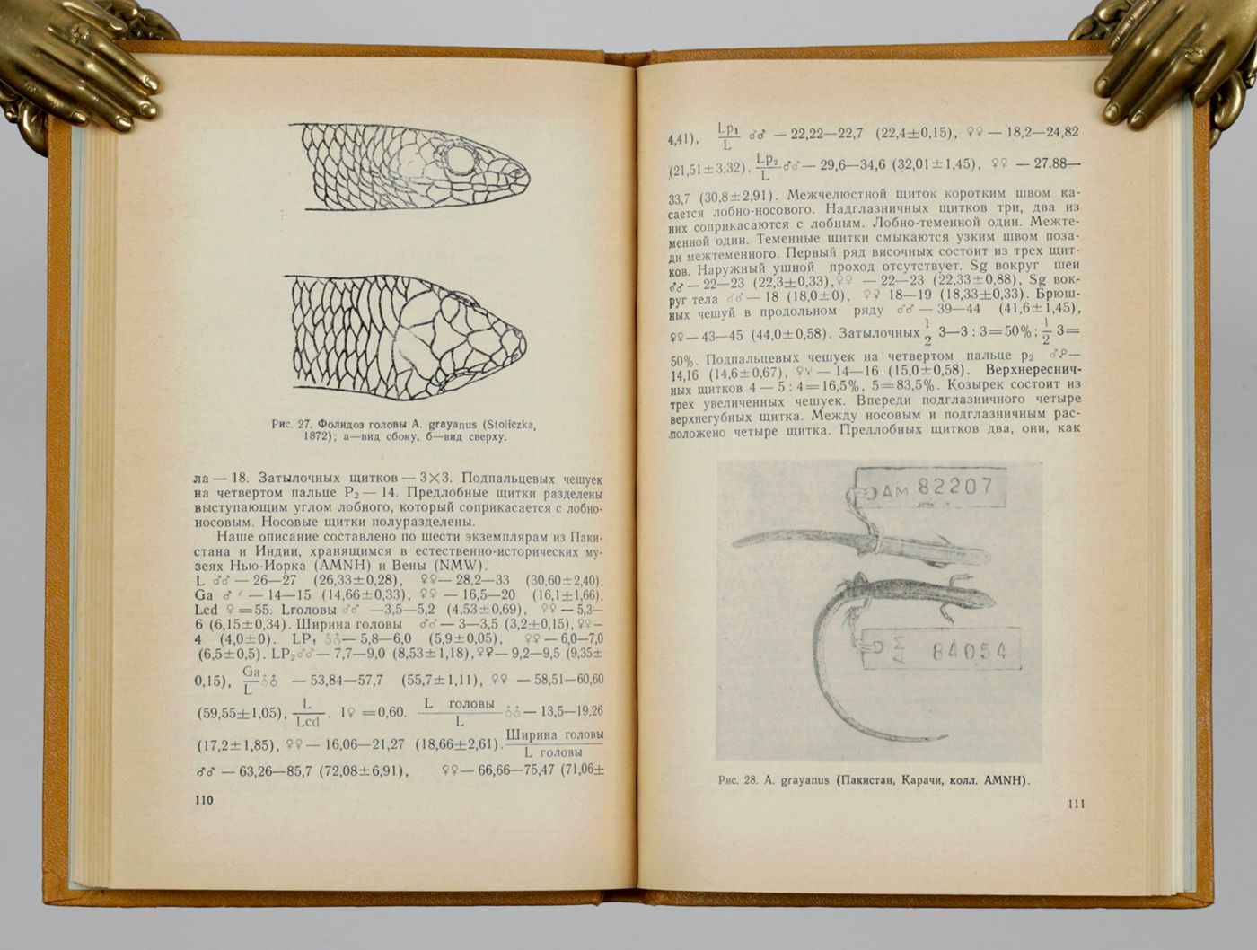 A seldom-seen if not rare, but well-illustrated work on the ablepharine skinks of Central Asia, a group of lizards living in exceptional altitudes, including the Himalayas, and Tibetan plateau. This work however, deals with the westernmost species, all belonging to the genus Ablepharus and subgenera. Bookplate on the front pastedown; label recording seller, place and date tipped in on the front free endpaper recto. Otherwise, an as new clean copy.