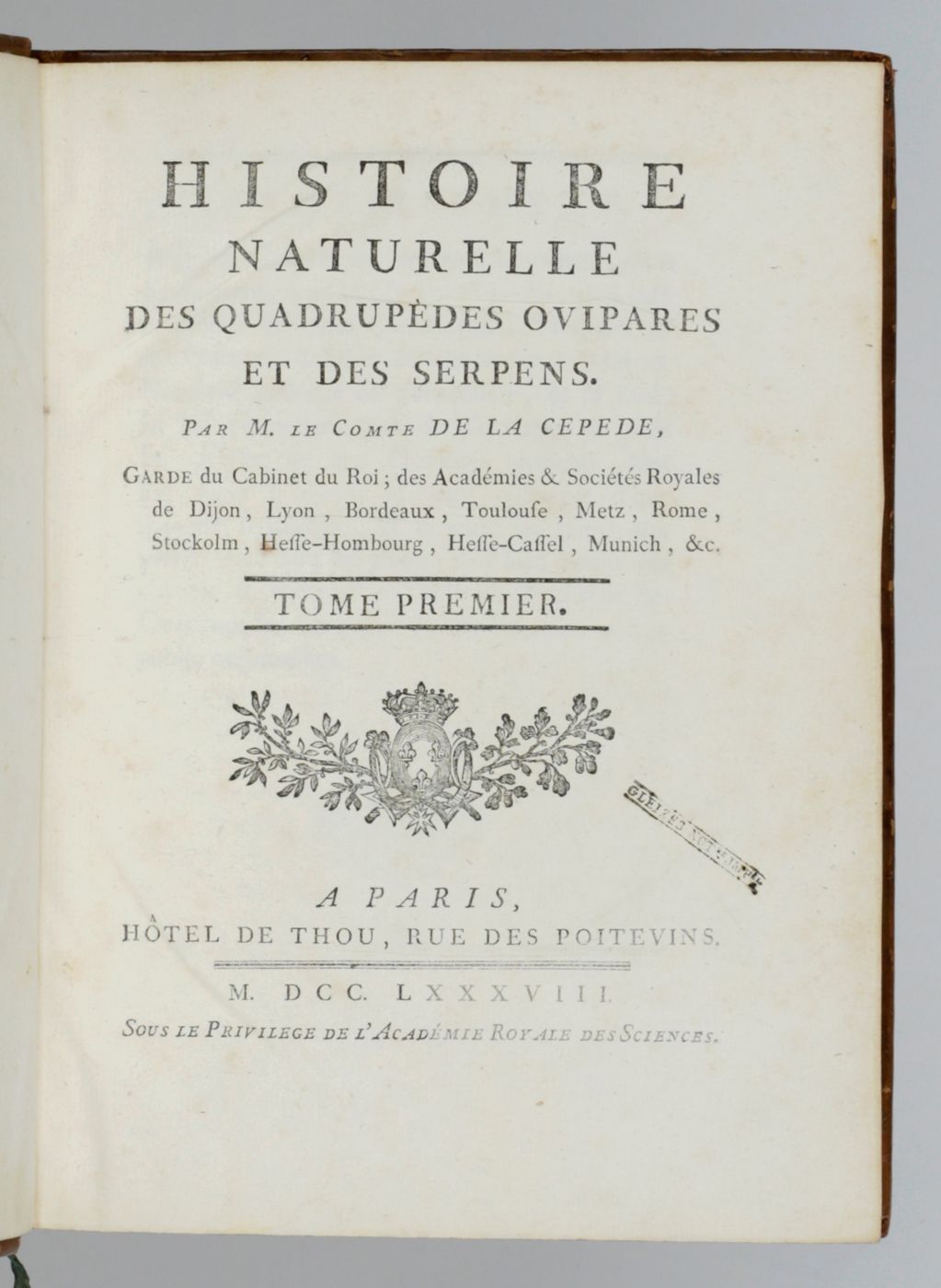 Histoire naturelle, générale et particuliére, avec la description du cabinet du roi. Histoire naturelle des quadrupèdes ovipares et des serpens. Tome premier - second. [Complete].