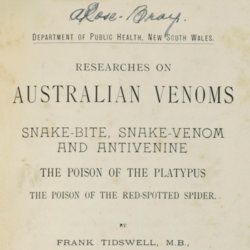 Researches on Australian Venoms. Snake-bite, snake-venom and antivenine. The poison of the platypus. The poison of the red-spotted spider.