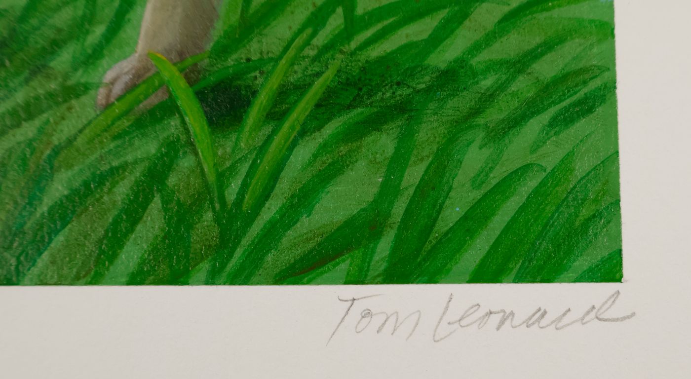 Philadelphia, PA, The Artist, ca. 2005. A fine, original full-colour painting (16.5 x 20.3 cm, with a 3.8 cm white border). Acrylic on cardboard, by the American animal painter Tom Leonard.