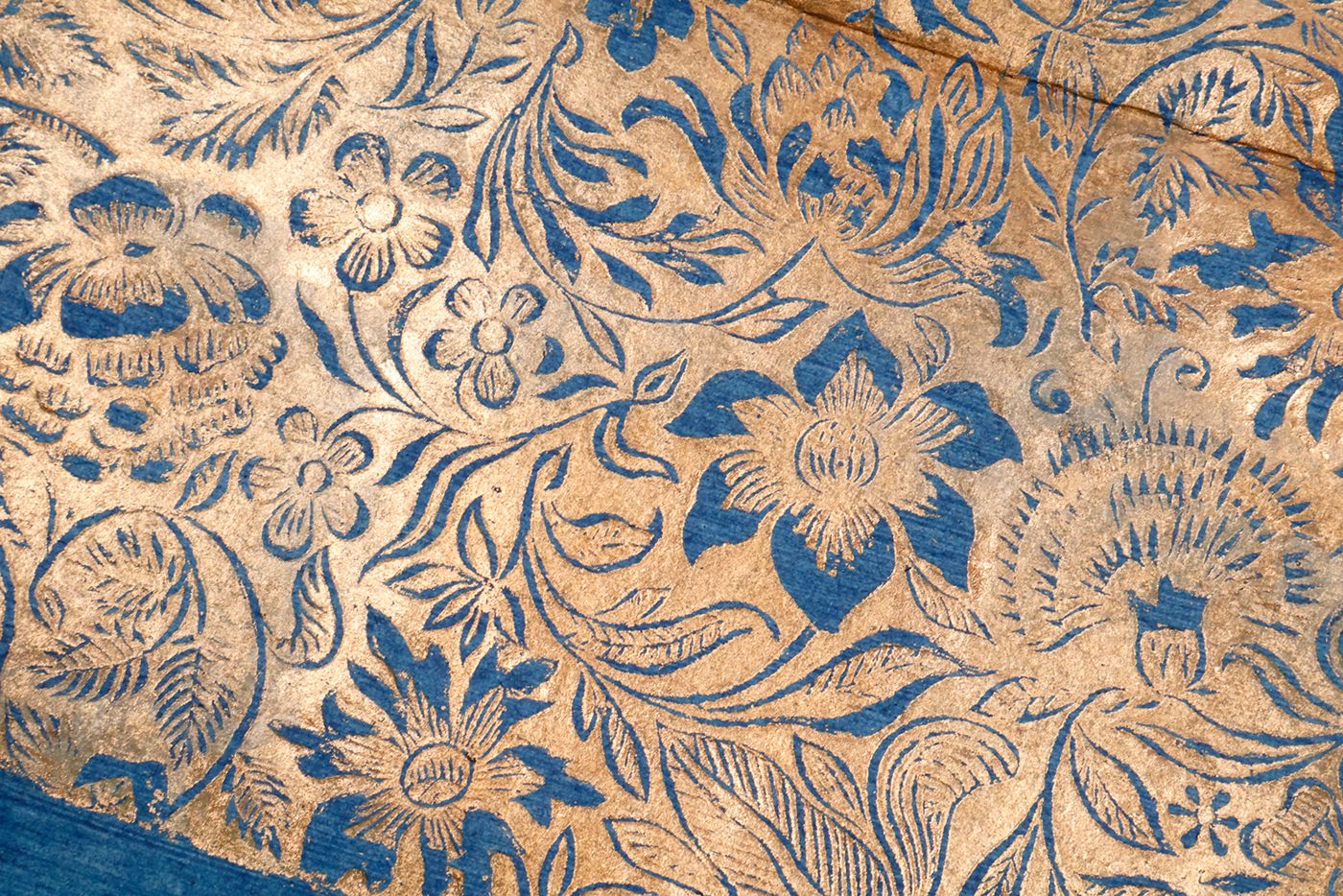 [Germany, ca. 1820]. Single sheet, with gilt floral pattern on blue-dyed wove paper (43.0 x 35.5 cm).
