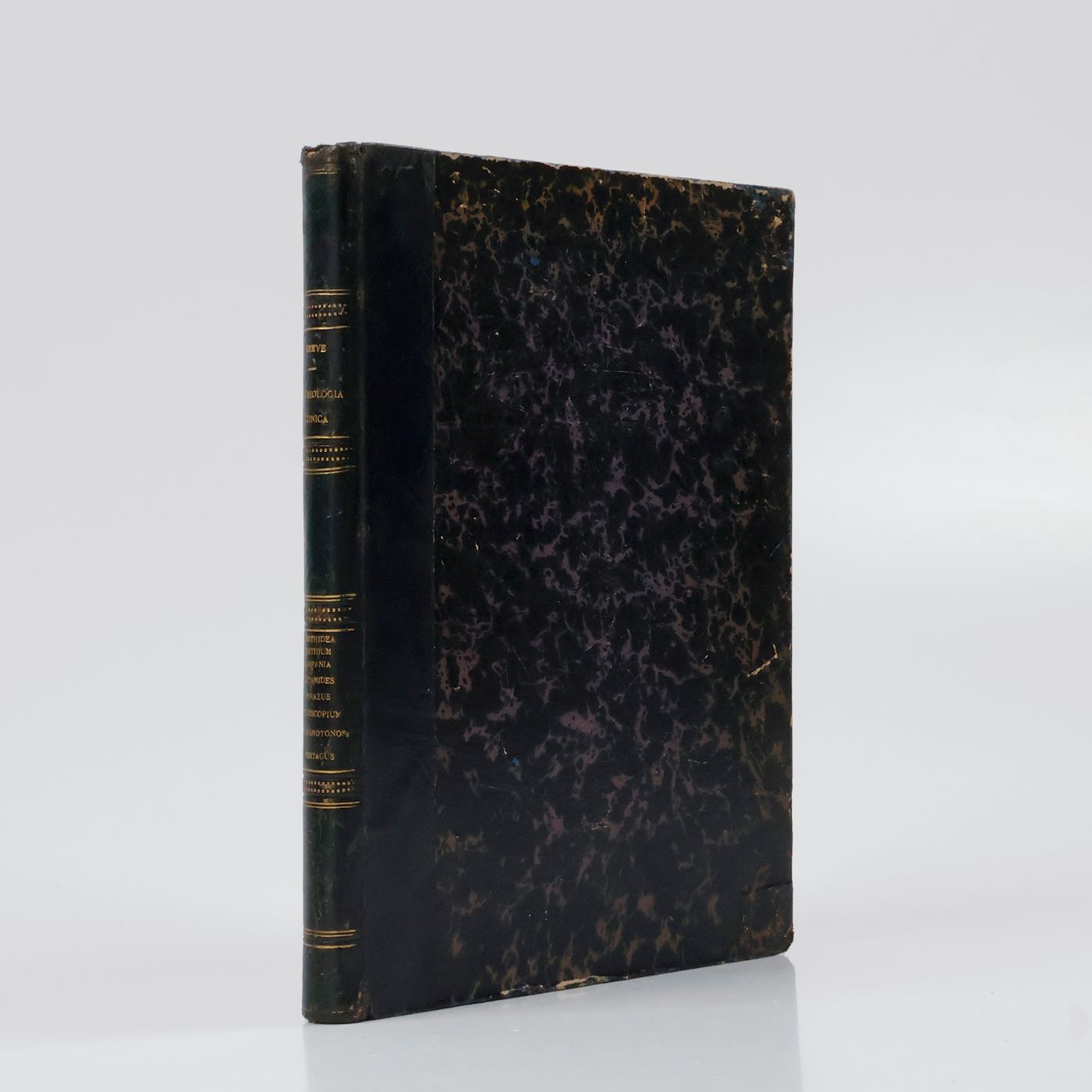 Very rare copy of the combined Cerithoidea in Conchologia Iconica, started by Lovell Reeve in 1843 and finished (rather than completed) long after Reeve's death in 1865 by G. B. Sowerby, comprising 20 volumes in all. Cerithioidea was not yet recognized in Reeve's days as a superfamily, but the gross similarity of the genera involved made this "natural" grouping evident and the short time span between the parts published suggests that they were studied by the author(s) simultaneously. These monographs, perhaps the first done by Sowerby alone, include the description of several hundred species including many that were poorly known or new. Most of the descriptions are based on material collected by the most famous shell collector of the 19th century, Hugh Cuming (1791-1865). "...Reeve had become acquainted with Cuming, and Reeve’s life was changed forever. ... Their association was such as to encourage Reeve to begin the Conchologia Iconica in 1843 primarily for description of Cuming material. Many of the Part covers for the Iconica carry the wording “Illustrated chiefly from the Cumingian Collection" (Petit). Small paper repair to one text leaf margin, a few tiny pencil annotations, otherwise very good with all the plates clean and finely, accurately hand-coloured. Caprotti, p. 213; Nissen ZBI, 3331. Petit ( Zootaxa 1648), p. 30.