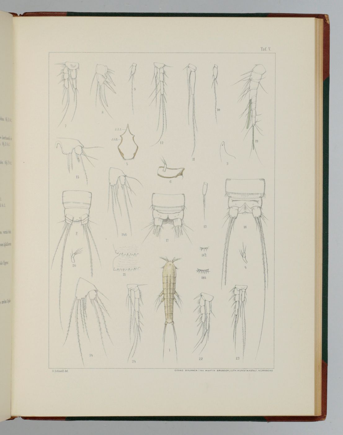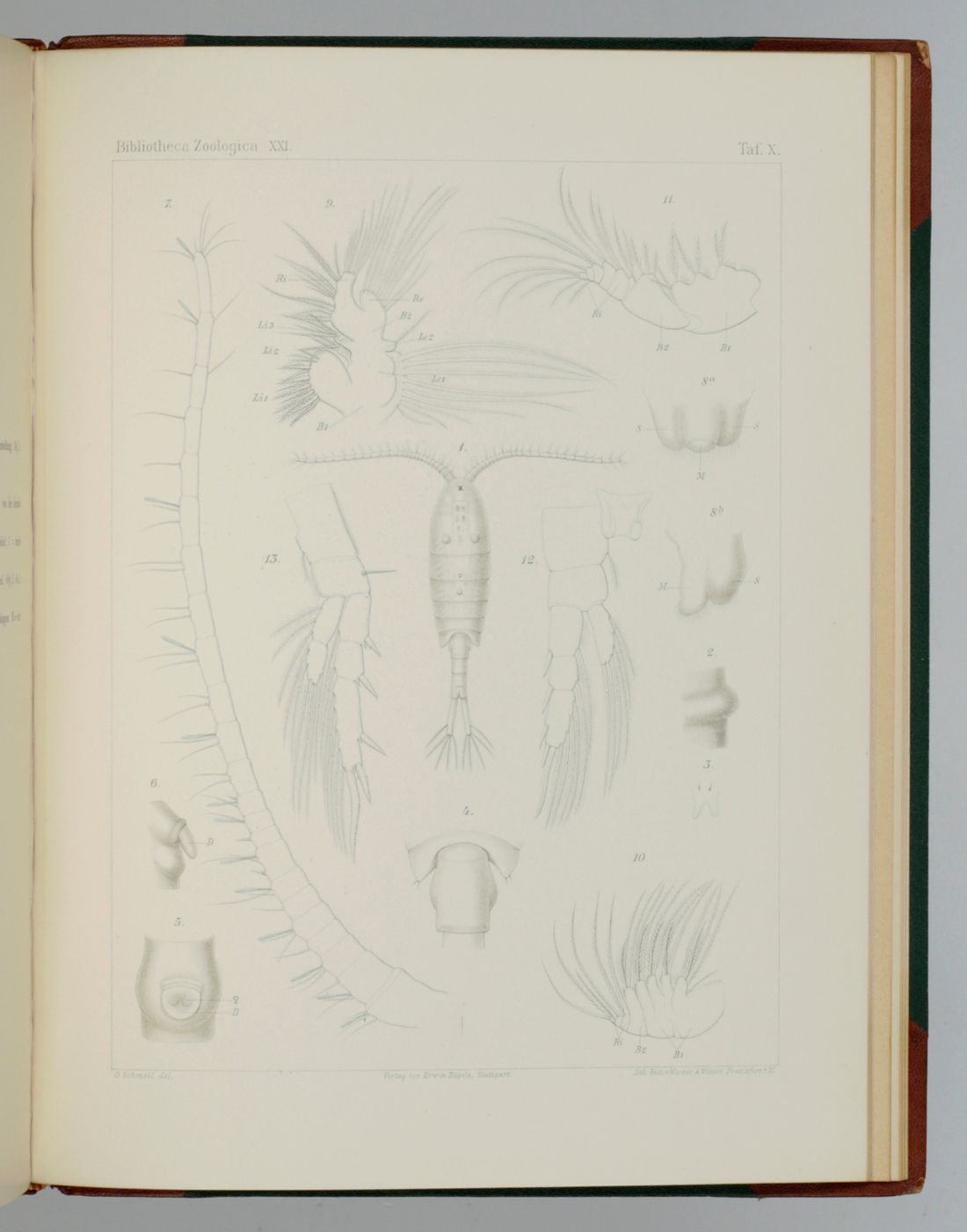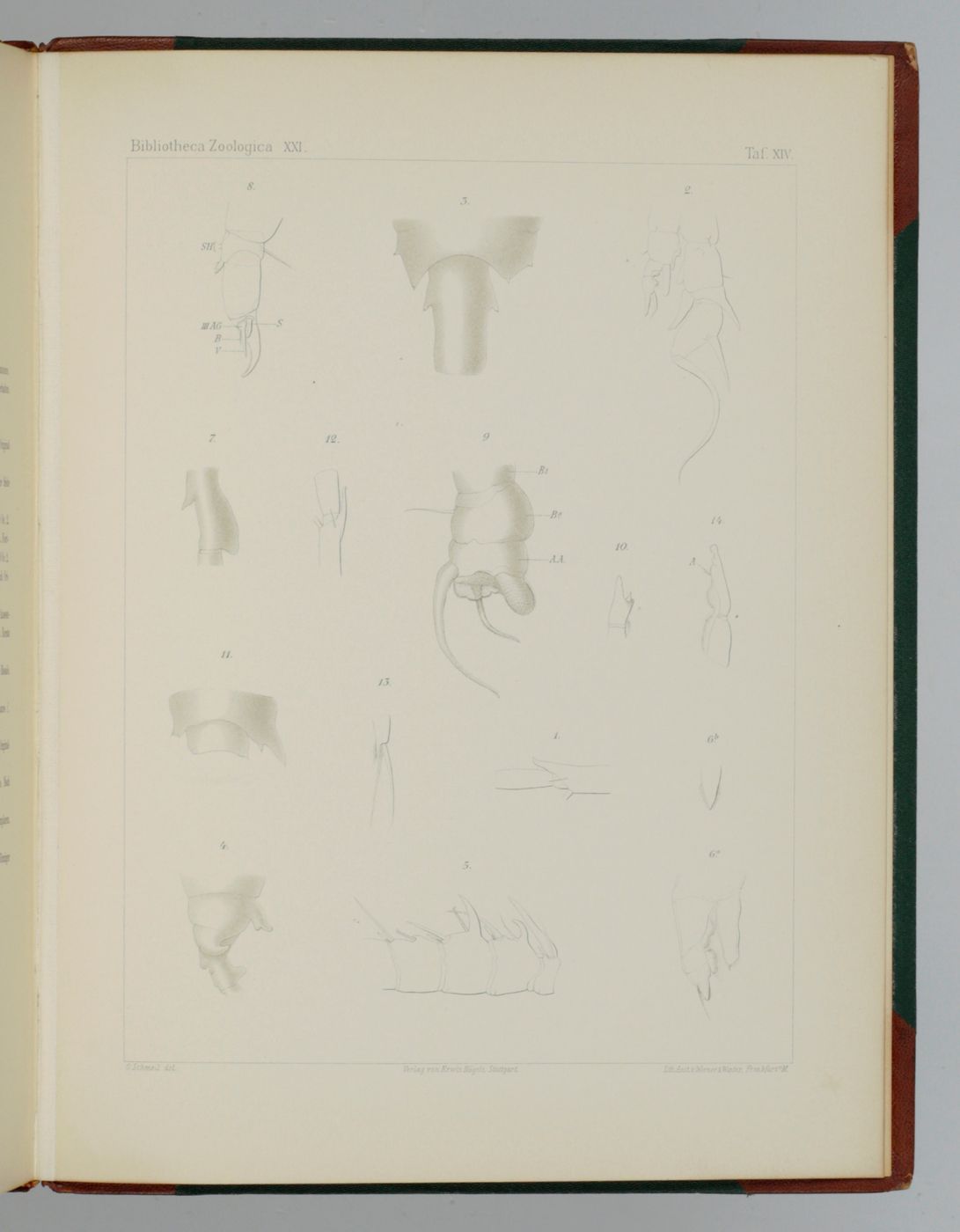 The best and rarest work of the German zoologist and botanist Otto Schmeil (1860-1943), based upon his dissertation. A second title to part II states that it is part of Leuckart & Chun's Bibliotheca Zoologica (not to be confused with the identically titled works by Carus & Engelmann, nor with the work by Taschenberg). Text and plates bound separately, but there is no separate title page to the plates. Instead, there are separate title pages to the four parts. The plates are very well executed and entirely free of foxing. The Nachtraghas a pagination continuing from part III. Inscription by former owner on front paste-down of text part, stamp on title page (pasted over), Some rubbing to spine ends and hinges, otherwise a fine, clean set of this very scarce work with no other copies on the internet, nor any auction record in the last 30 years or more.