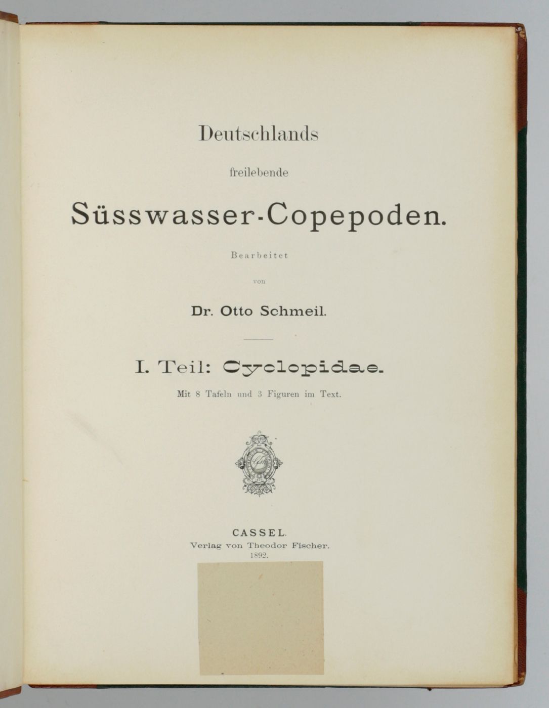 Deutschlands freilebende Süsswasser-Copepoden. I Teil: Cyclopidae, II Teil: Harpacticidae, III Teil: Centropagidae, [IV] Nachtrag zu den Familien der Cyclopiden und Centropagiden, zugleich ein Begleitwort zu der Bearbeitung der Süsswasser-Cyclopiden und -Centropagiden im "Thierreiche".