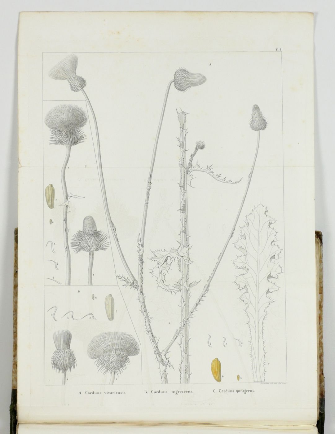 A very rare publication by the French botanist Claude Thomas Alexis Jordan (1814-1897). "Born into a wealthy family, he chose a career path in natural history rather than becoming a businessman like his father. From 1836 to 1877 he traveled widely throughout France, collecting many botanical specimens on trips to the Massif Central, the Alps, the Pyrenees as well as on excursions to locations near Lyon. As a member of the Linnaean Society of Lyon, he came under the influence of several local naturalists, including Marc Antoine Timeroy, an amateur botanist who would have a profound impact upon his career. At Jordan's extensive botanical garden in Lyon, with his assistant Joseph Victor Viviand-Morel, he cultivated many thousands of different varieties of plants. Known for his micro-morphological analysis of plants - as a taxonomist he proposed a narrow conceptualization for the determination of species. Because of this, he was widely criticized for his tendency to differentiate species too finely" (Wikipedia). He described nearly 1700 new plants, many of which are found in this work. In total, seven "fragments" were published, of which these are the first four. All published by Maison and Weigel. The last three, which are not included, were published in Paris by J. B. Baillière, with only another seven plates. Stafleu and Cowan err in listing Baillière as publisher of part 4. All present parts have title pages but in three of the parts they are included in the page numbering. On the verso of the half-title of the third and largest part, Jordan wrote a signed dedication to "Monsieur Huguenin"; most probably the French botanist Auguste Huguenin (1780-1860), writer of the Enumeratio plantarum exsiccatarum quae ex collectione A. Huguenin (à Chambéry, Savoie): promutua commutatione offeruntur (1851). Fore edge uncut. A very good copy. Stafleu and Cowan, 3409.