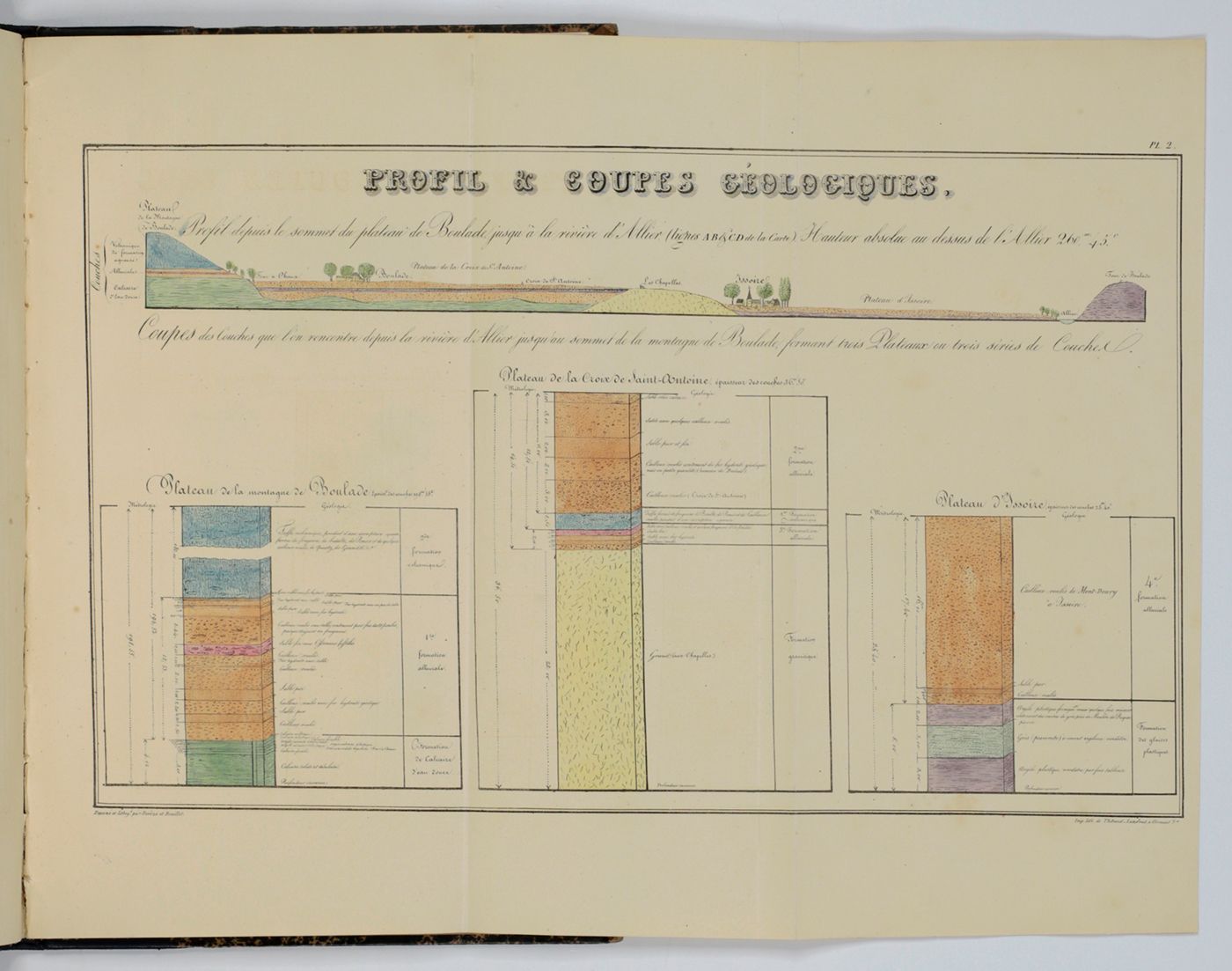 Clermont-Ferrand, Thibaud-Landriot, 1834-1836. Two papers in one. 8vo (21.6 x 13.7 cm). 166, [i] pp.; 16 pp.; two lithographed plates. 20th century half cloth over marbled boards. Spine with gilt title. Original printed wrappers of the first paper bound in.
