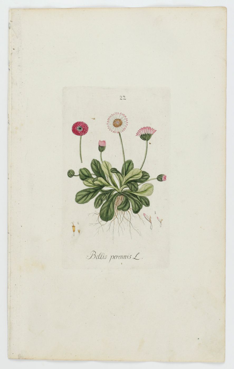 Botanica Pharmaceutica exhibens plantas officinalis quarum nomina indispensatoris recentur, cum Iconibus… Plate 22. Bellis perennis L. [Daisy].