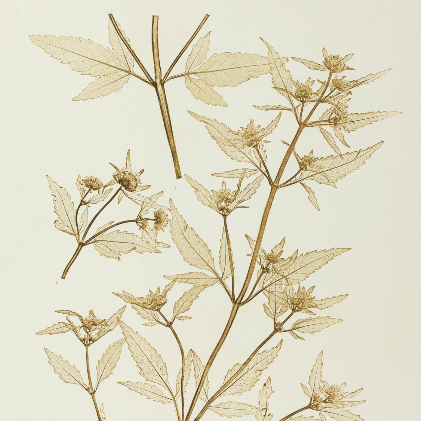 This plate is one of the most fantastic examples of nature printing with very decorative botanical illustrations. Only nature printing can give a true 3D effect to a plate, and these are among the best ever made. The author and artist, Constantin Freiherr von Ettingshausen (1826-1897), was a professor of botany and major researcher of European fossil floras. He also had a great interest in nature printing, for its accuracy in transferring a real natural history object to an image on paper. Here, these interests were combined. Plate in very good condition, with only a few small and marginal imperfections never disturbing the printed area. The complete work consisted of five folio atlases with over 500 plates. According to Staffleu & Cowan: "the most important work produced by nature printing ever published". Even individual plates, such as this one are very rare. Fischer, 69; Staffleu and Cowan, 1723.