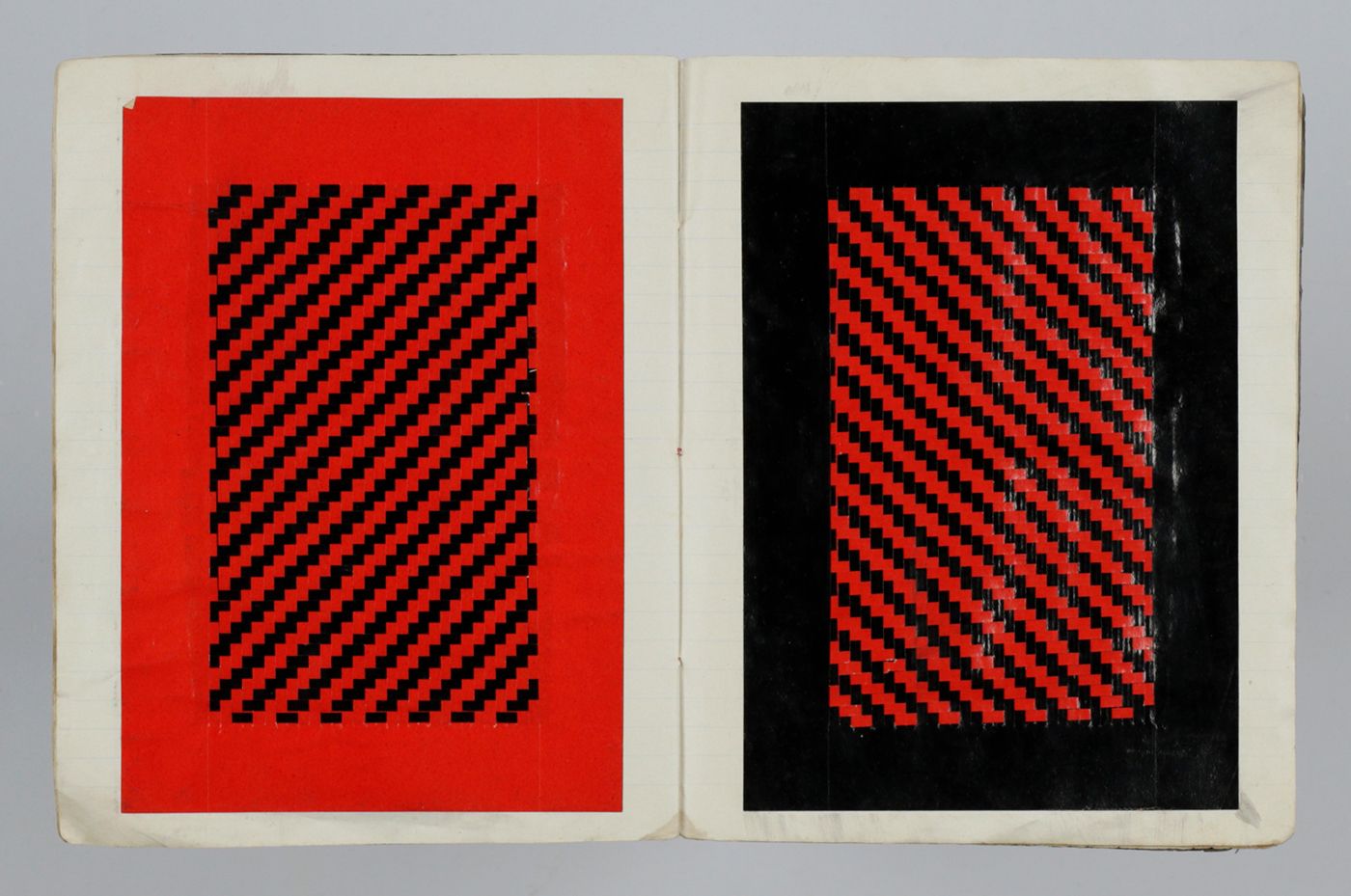 A unique piece of folk art from the province of Friesland, in the northern Netherlands. Made by a boy named Willem Dijkstra. On a basis of narrow strips of glossy paper, the samples show a wide, pleasant and intriguing variety of tessellations and colour combinations. With Willem being a very common Dutch first name, and Dijkstra being one of the most common Frisian surnames, it is difficult to establish the artist's identity. However, St. Jacobi Parochie (now: Sint Jacobiparochie) was and is a very small town, founded in 1505 by Catholic immigrants from Holland who diked this remote part of the Netherlands along the Wadden Sea. A St. Jacobiparochie farmer named Willem Dijkstra married in 1935 at the age of 27. Being born in 1907 or 1908, he may have been the artist. Wrappers damp-stained, and chipped at spine fold and edges; interior not affected; some very minor defects to the tessellations, otherwise very good.