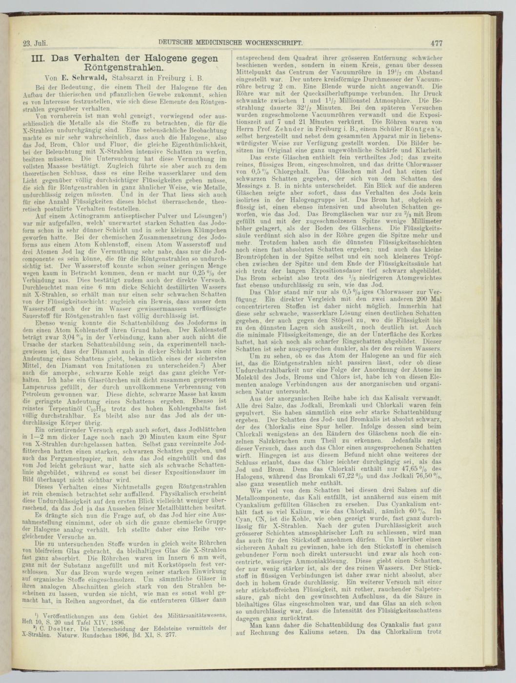 Deutsche medicinische Wochenschrift. [The first papers on the application of Röntgen or X rays in medicine].